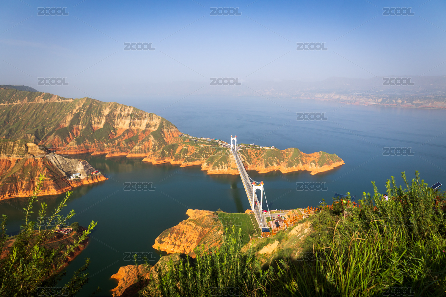 中国甘肃临夏永靖黄河刘家峡水库大桥风光