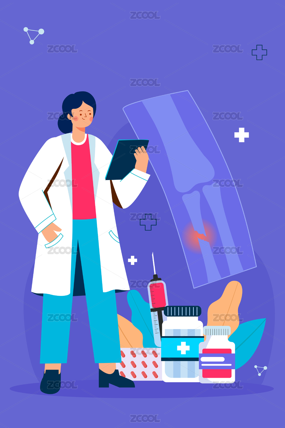医疗医学骨折类型科普插画
