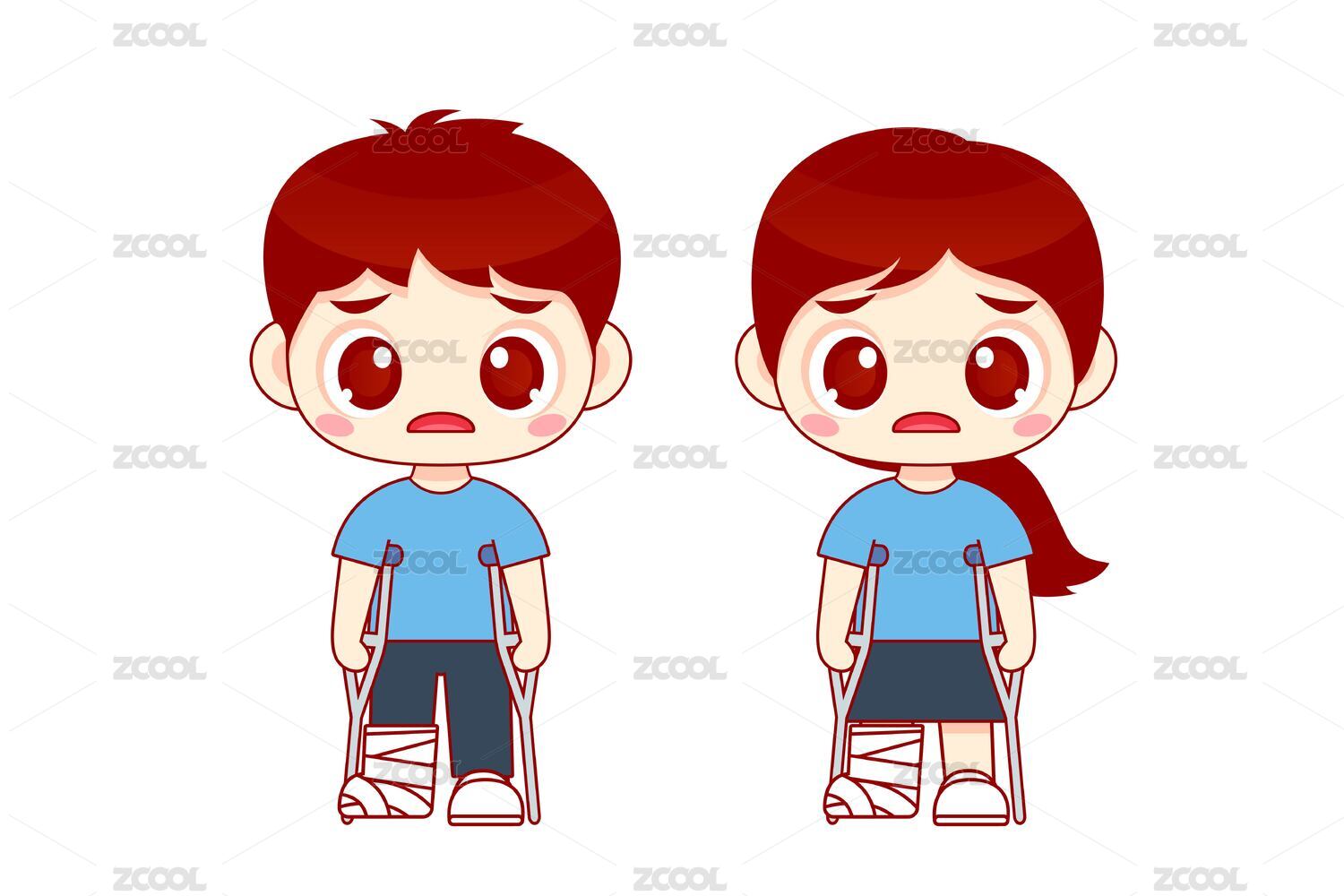 卡通骨折病人拄拐杖