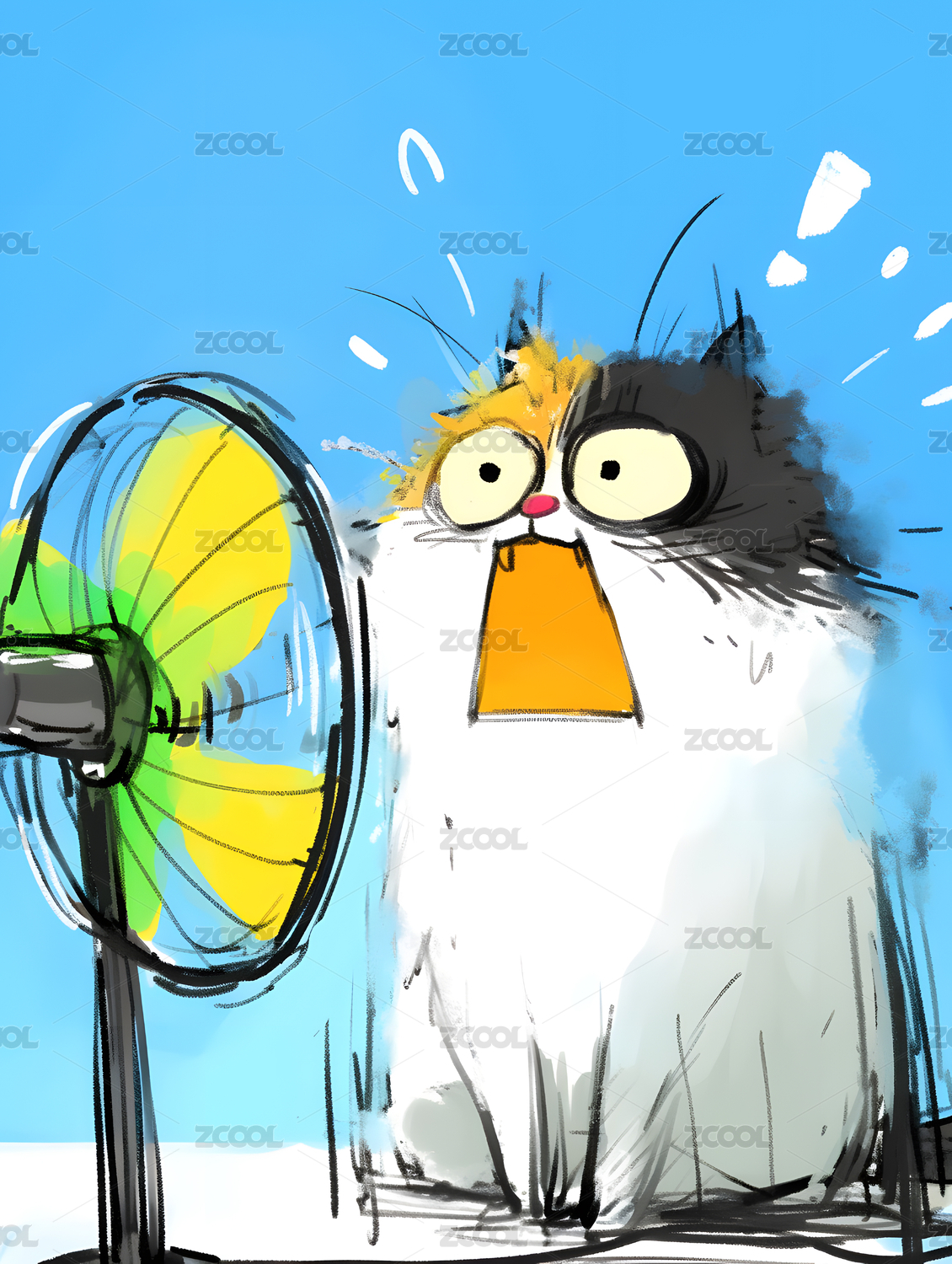 美丽漂亮的女人在夏季炎热的感觉,坐在客厅的地板上吹电扇来提神。