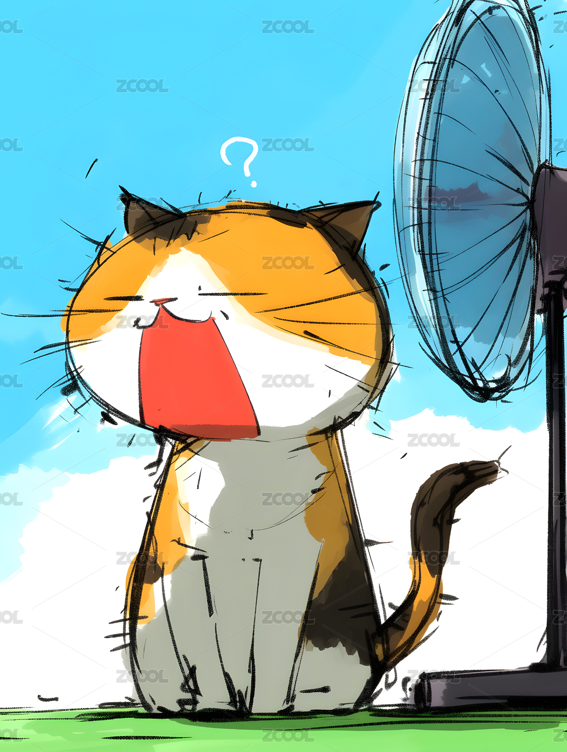 开朗的美少女小孩吃西瓜,夏天吹电扇。