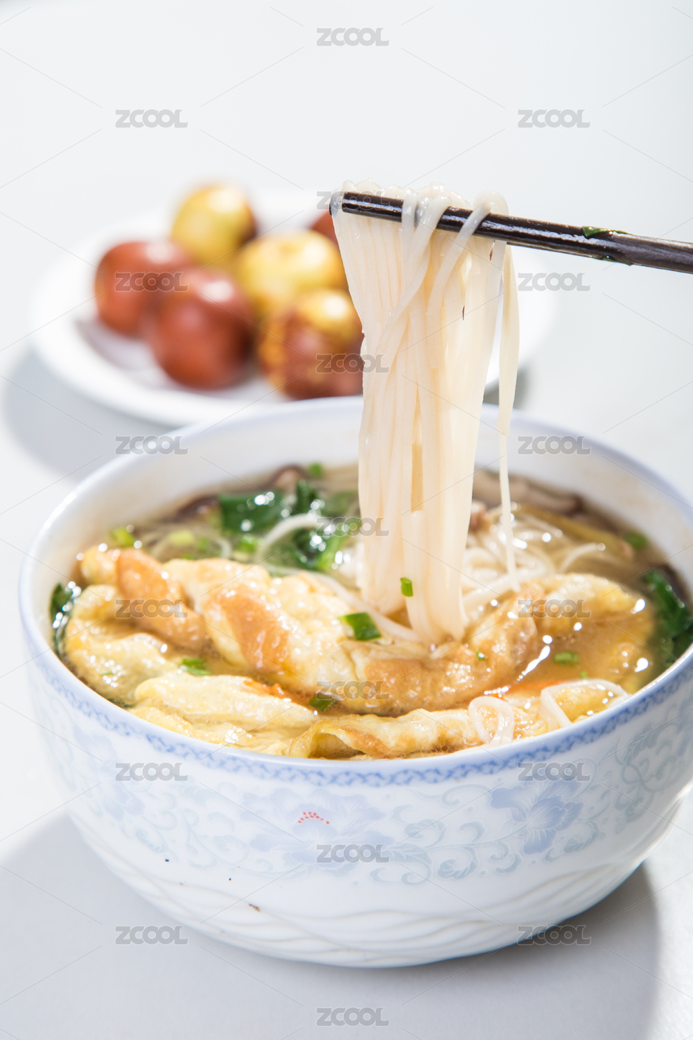 白色背景中面食营养鸡蛋面特写