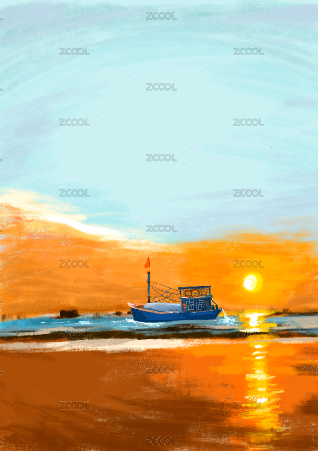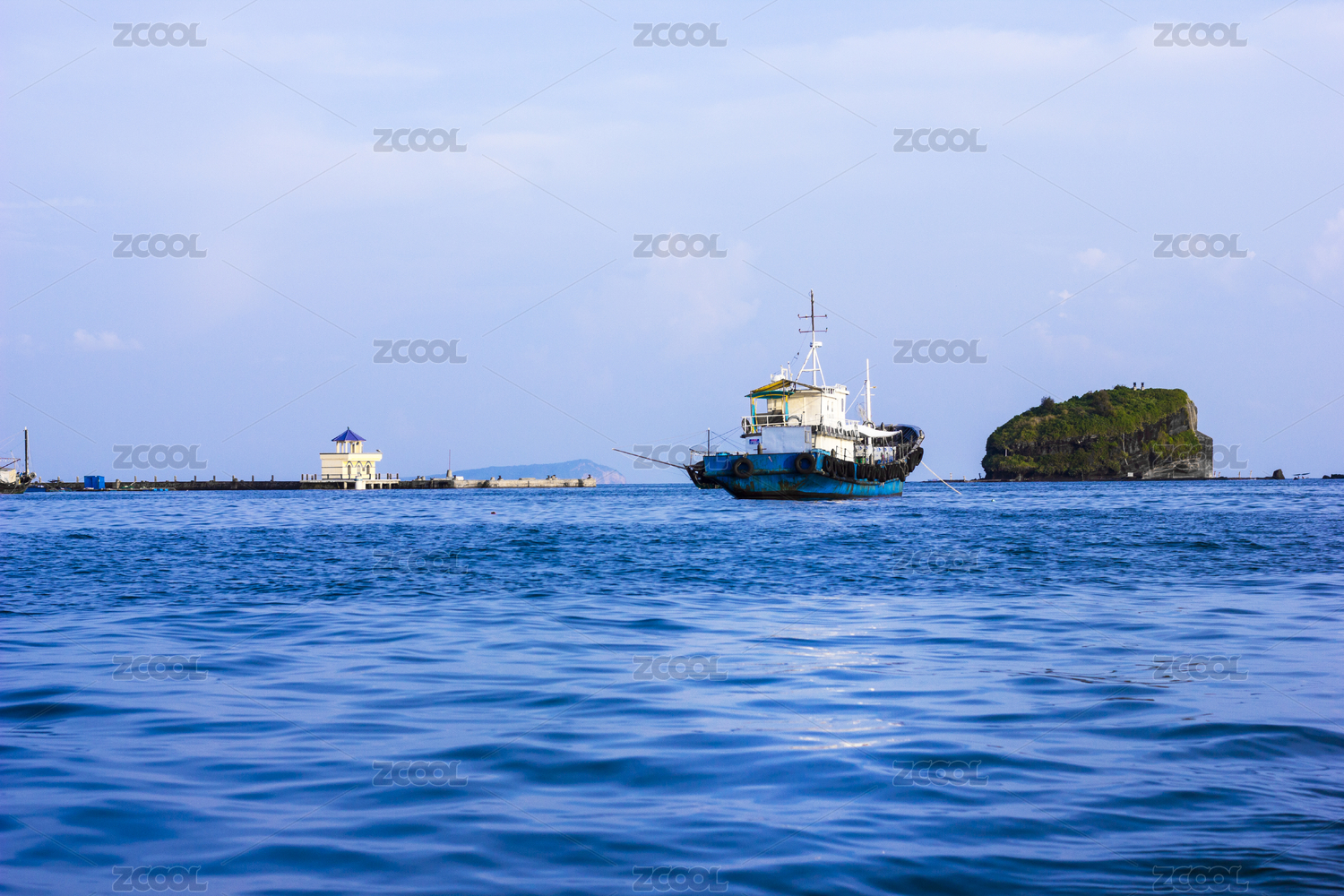 中国舟山枸杞岛元出汗的渔船停泊在碧蓝色的大海上
