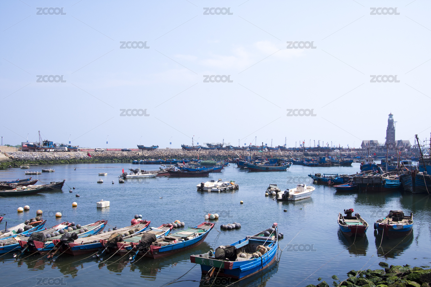 夏日午后中国辽宁省大连市渔人码头停靠的渔船