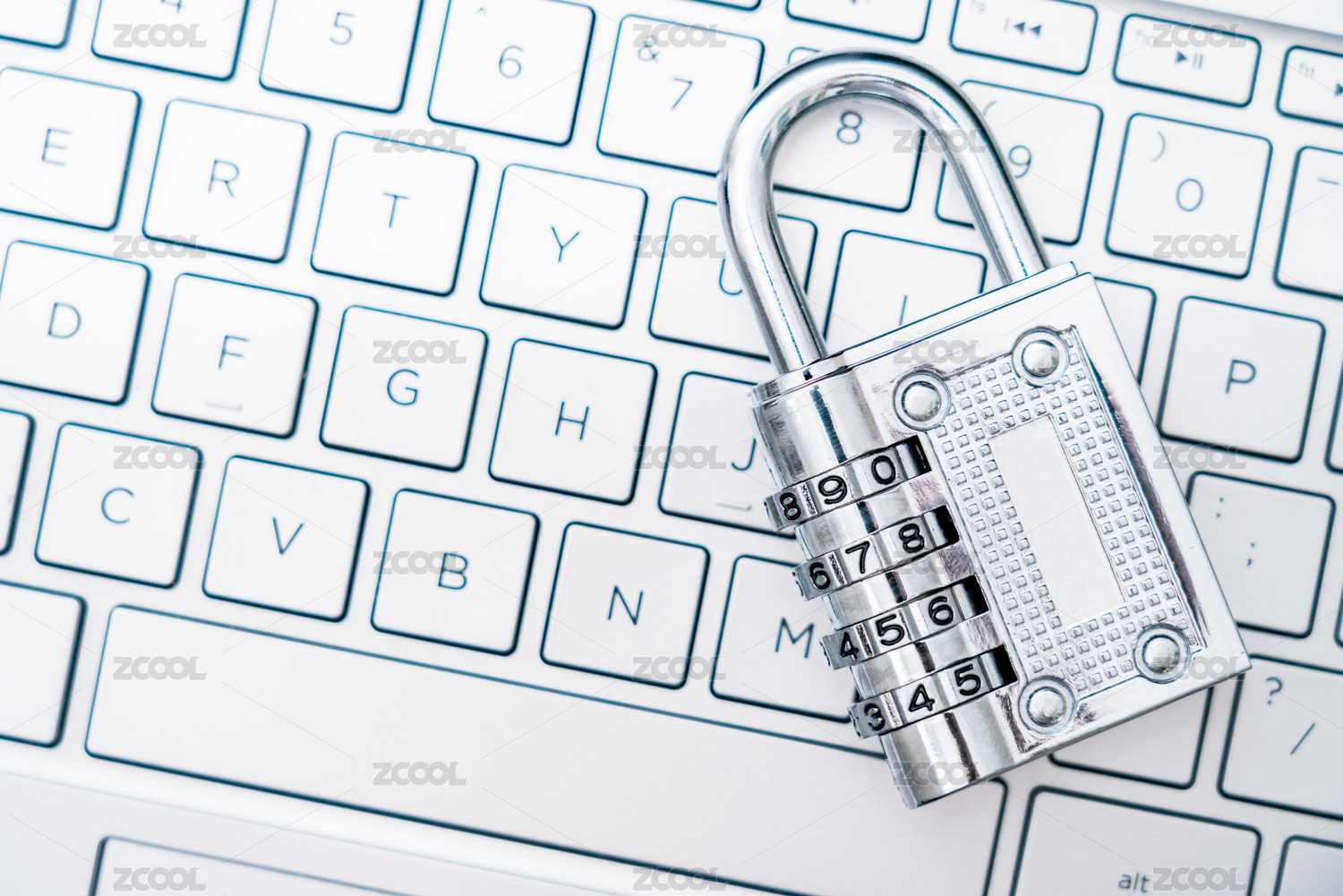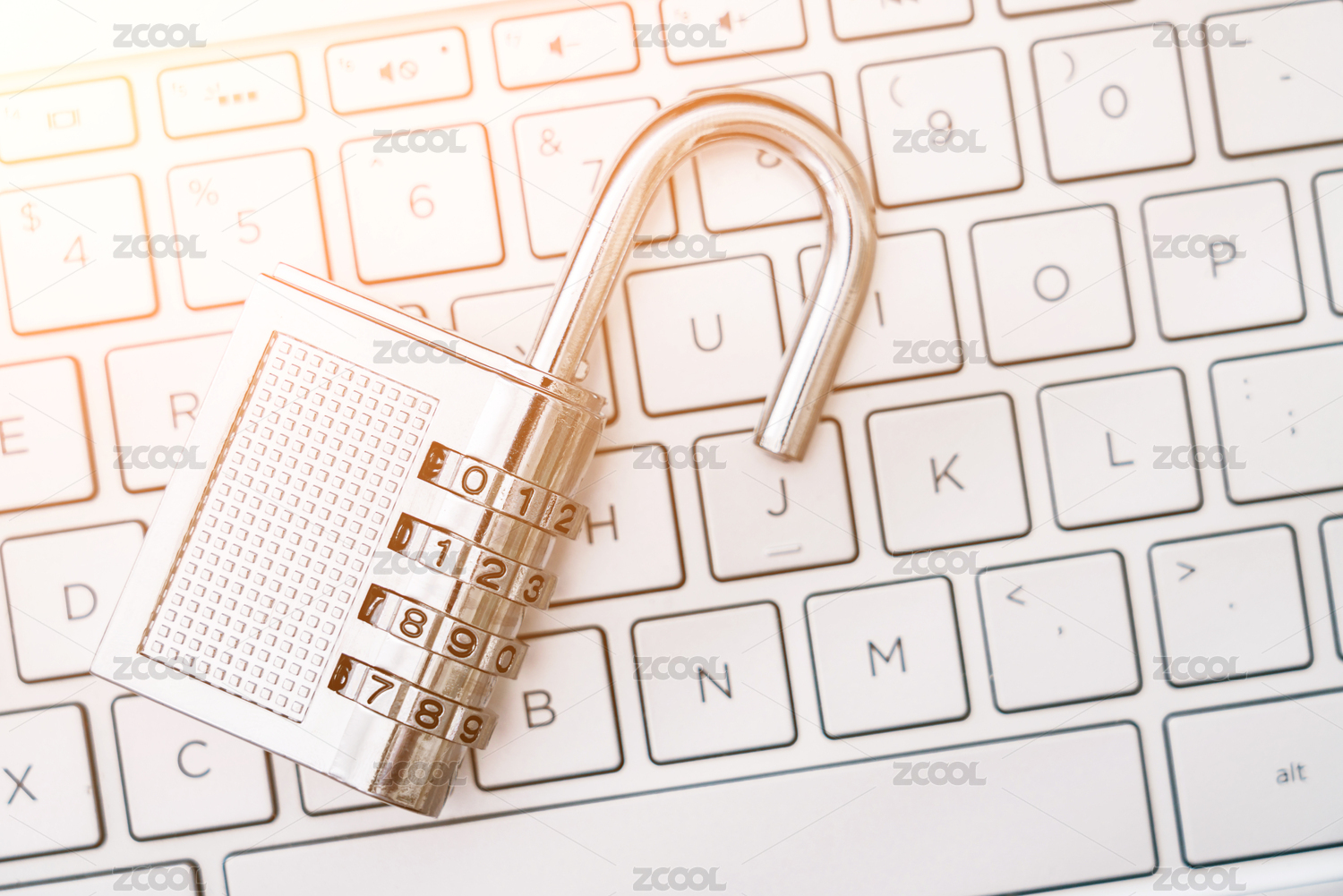 一把密码锁放在电脑键盘上
