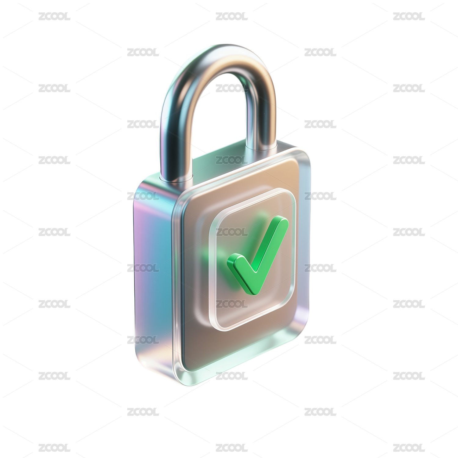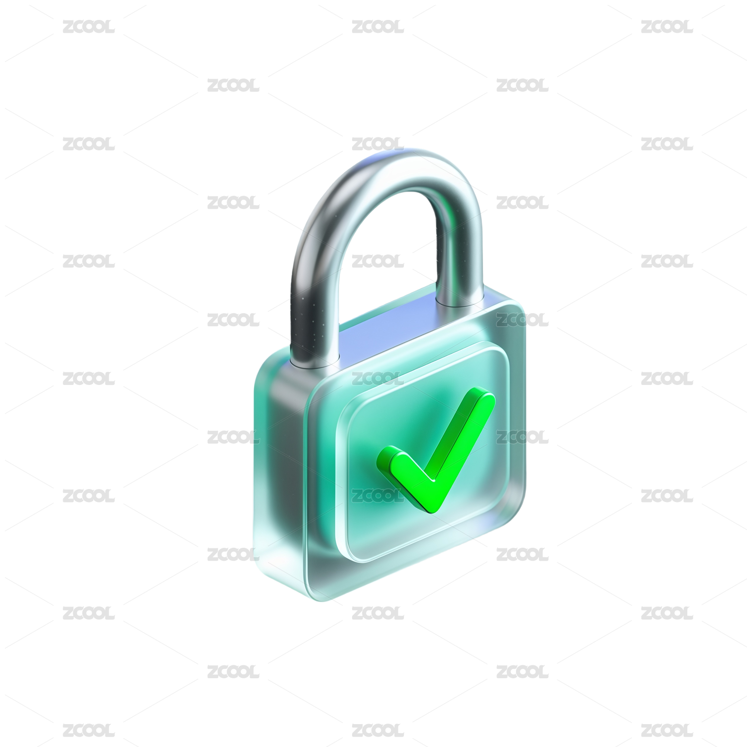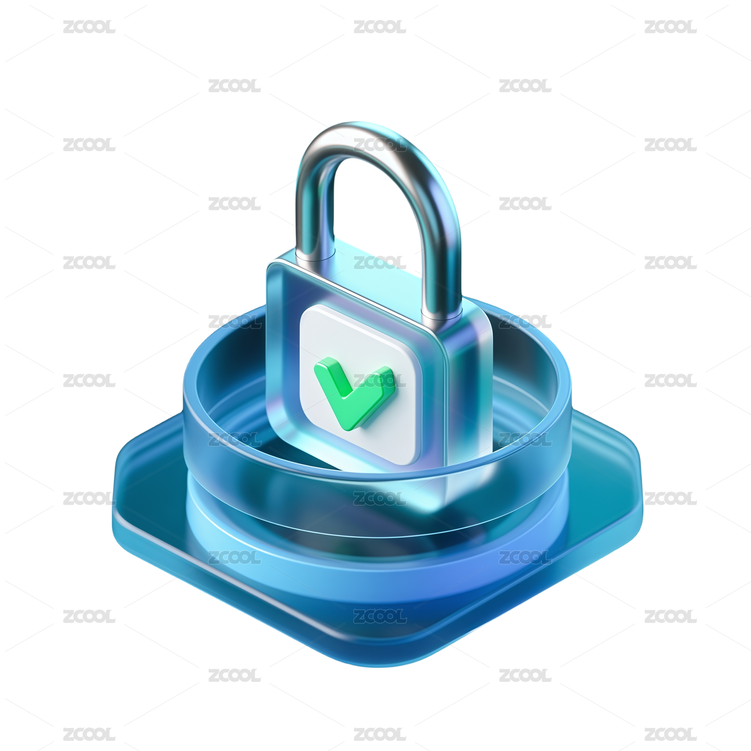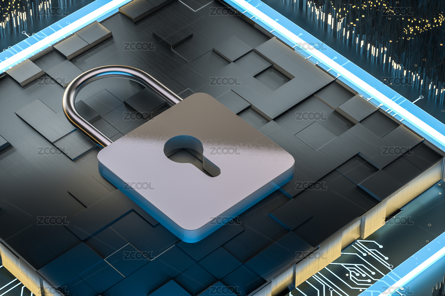 三维渲染,金属加密锁与科技背景
