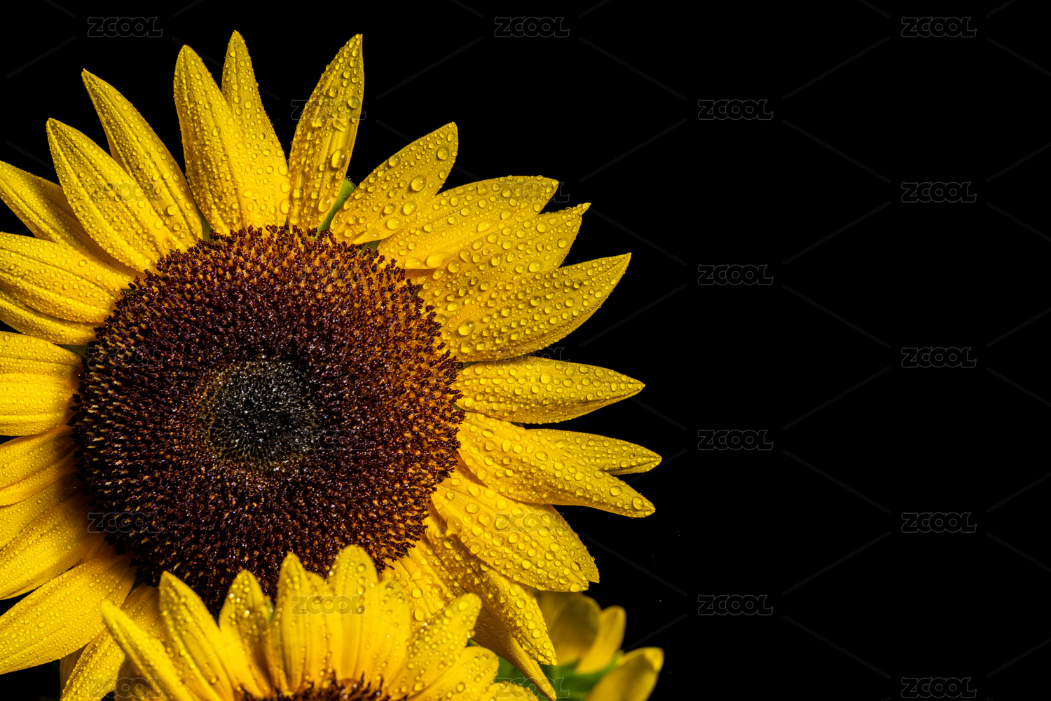 向日葵特写在黑色背景前