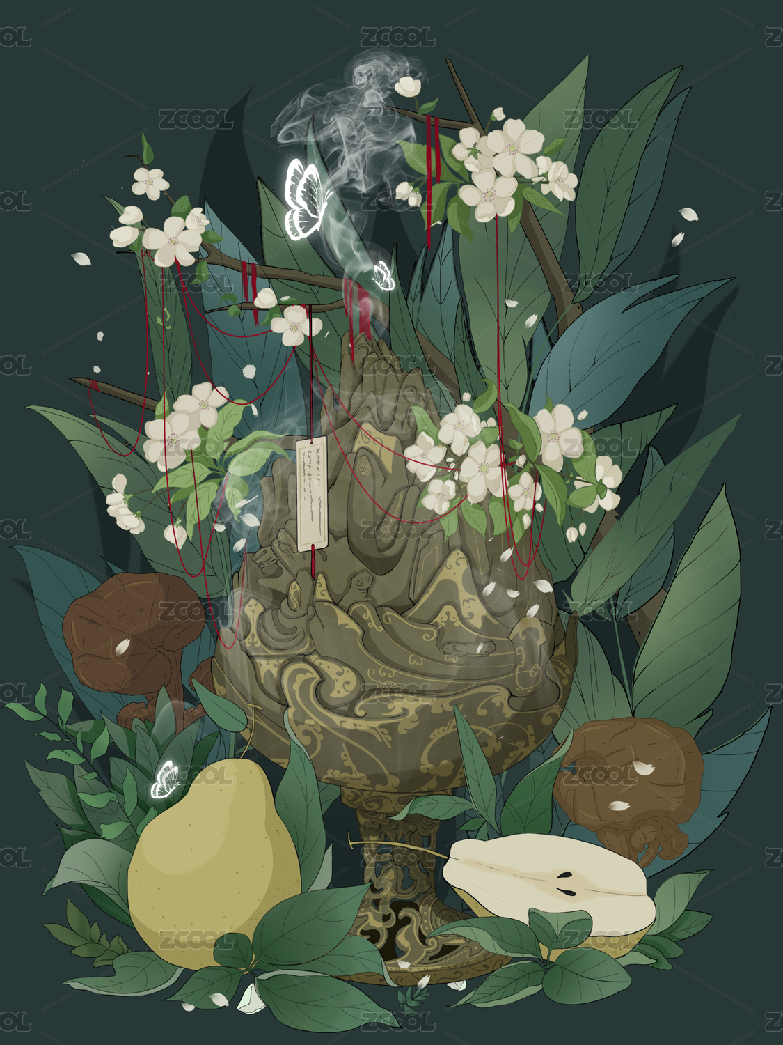 文物铜错金博山炉国潮插画