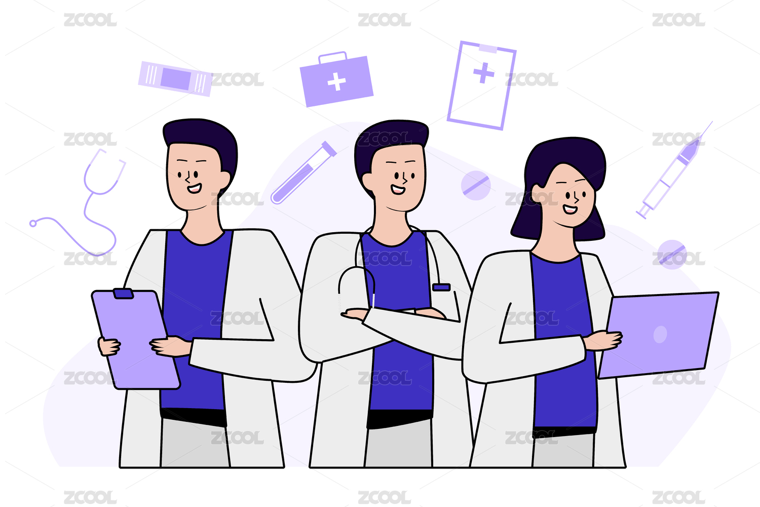 医疗保健人员小组,医生、护士和外科医生一起工作的专业医生团队,医技研究所和医生队伍服务理念。