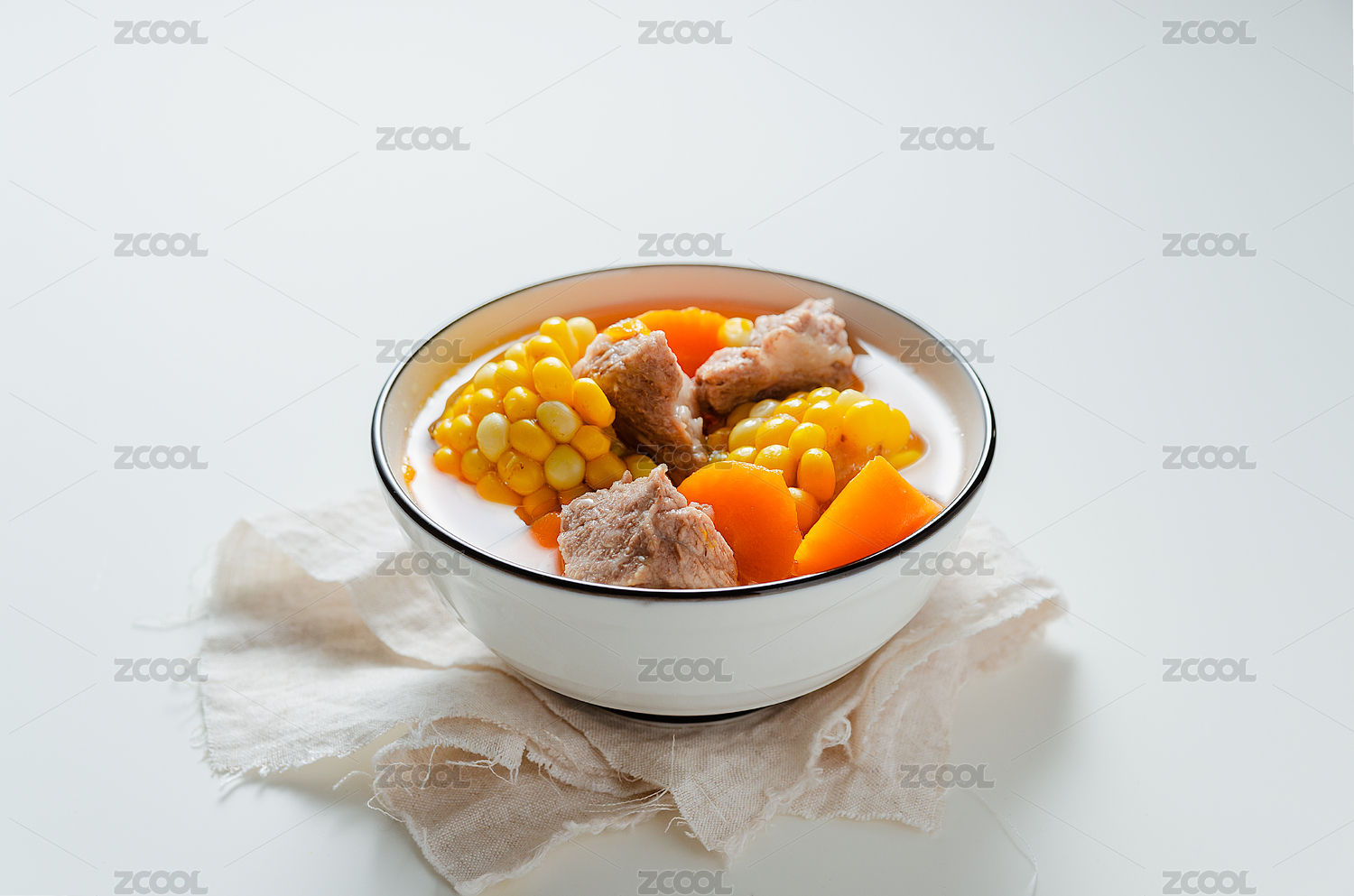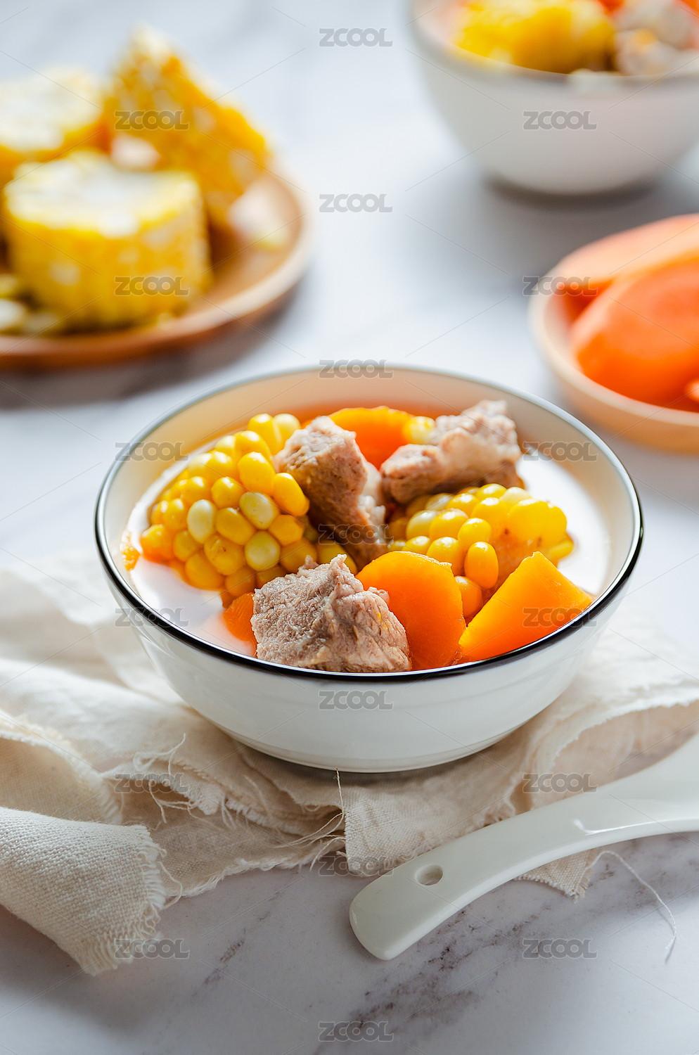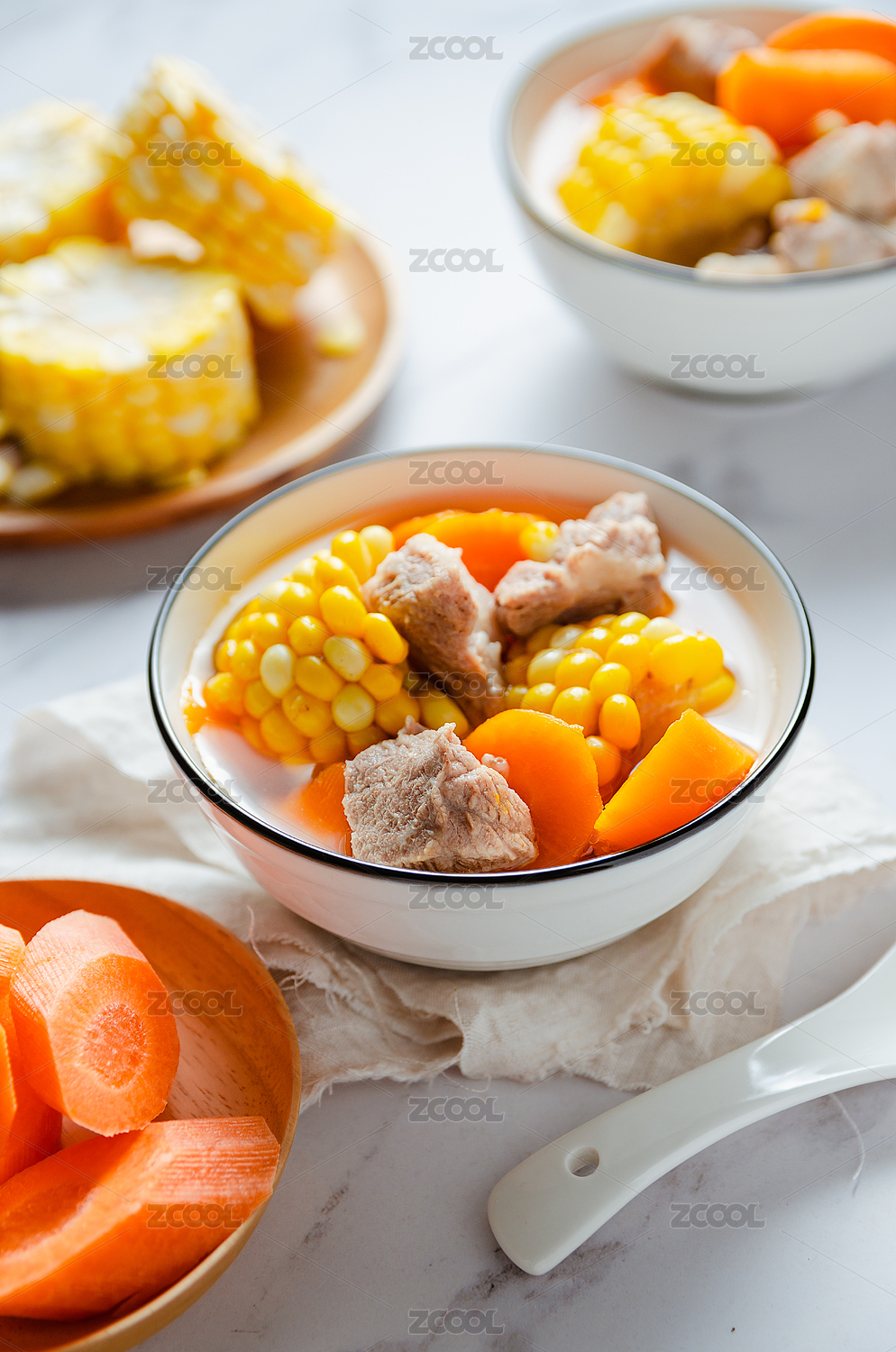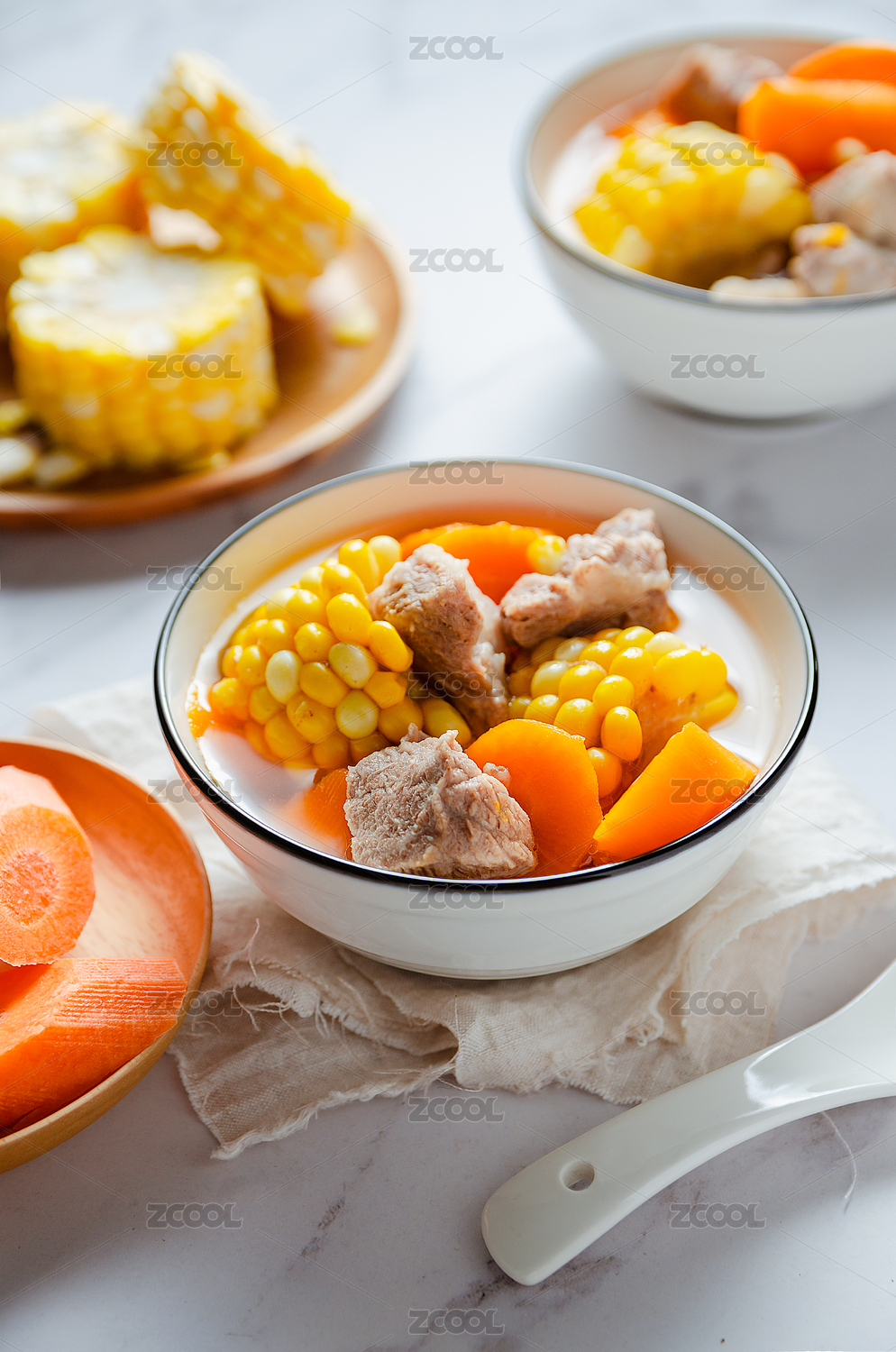 滋补养生的胡萝卜玉米猪骨汤摆在桌面上