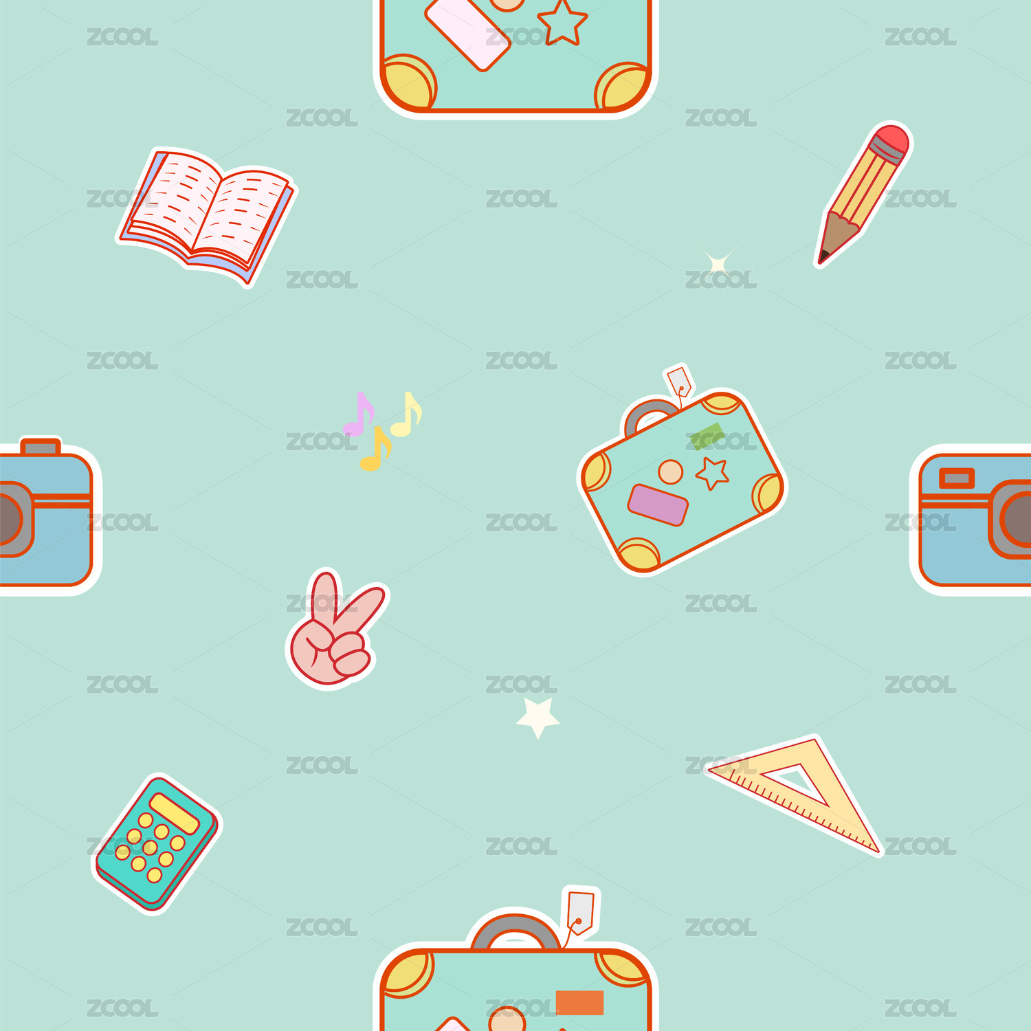 可爱的淡绿色旅行箱四方连续图案无缝纹理图