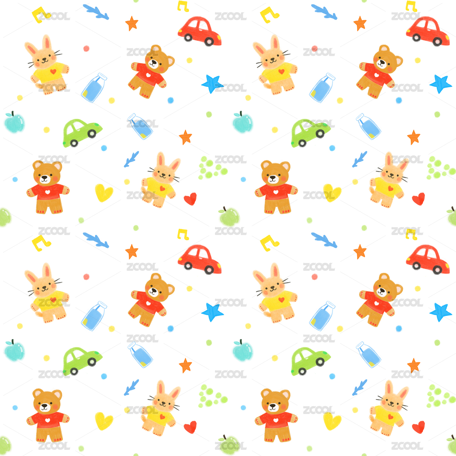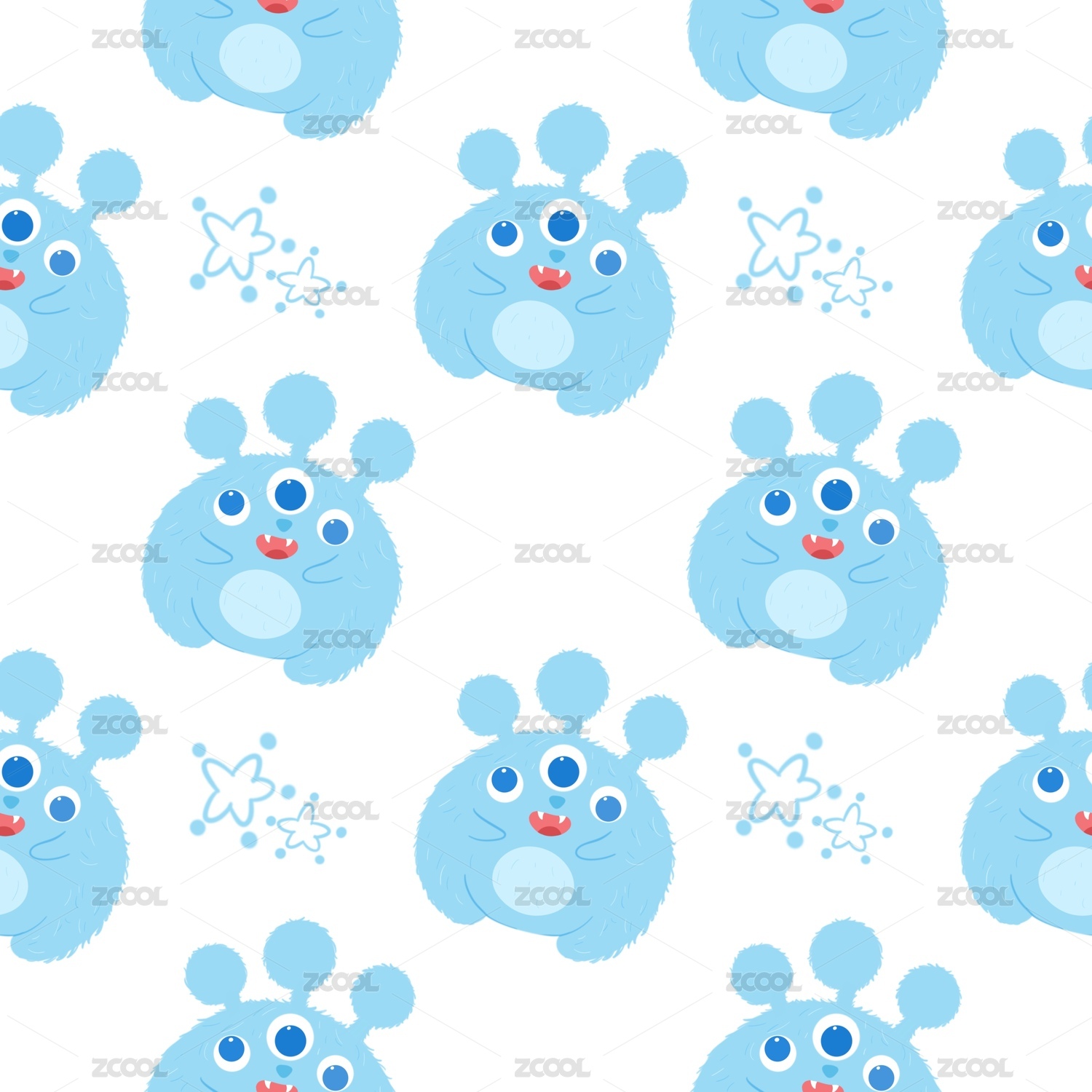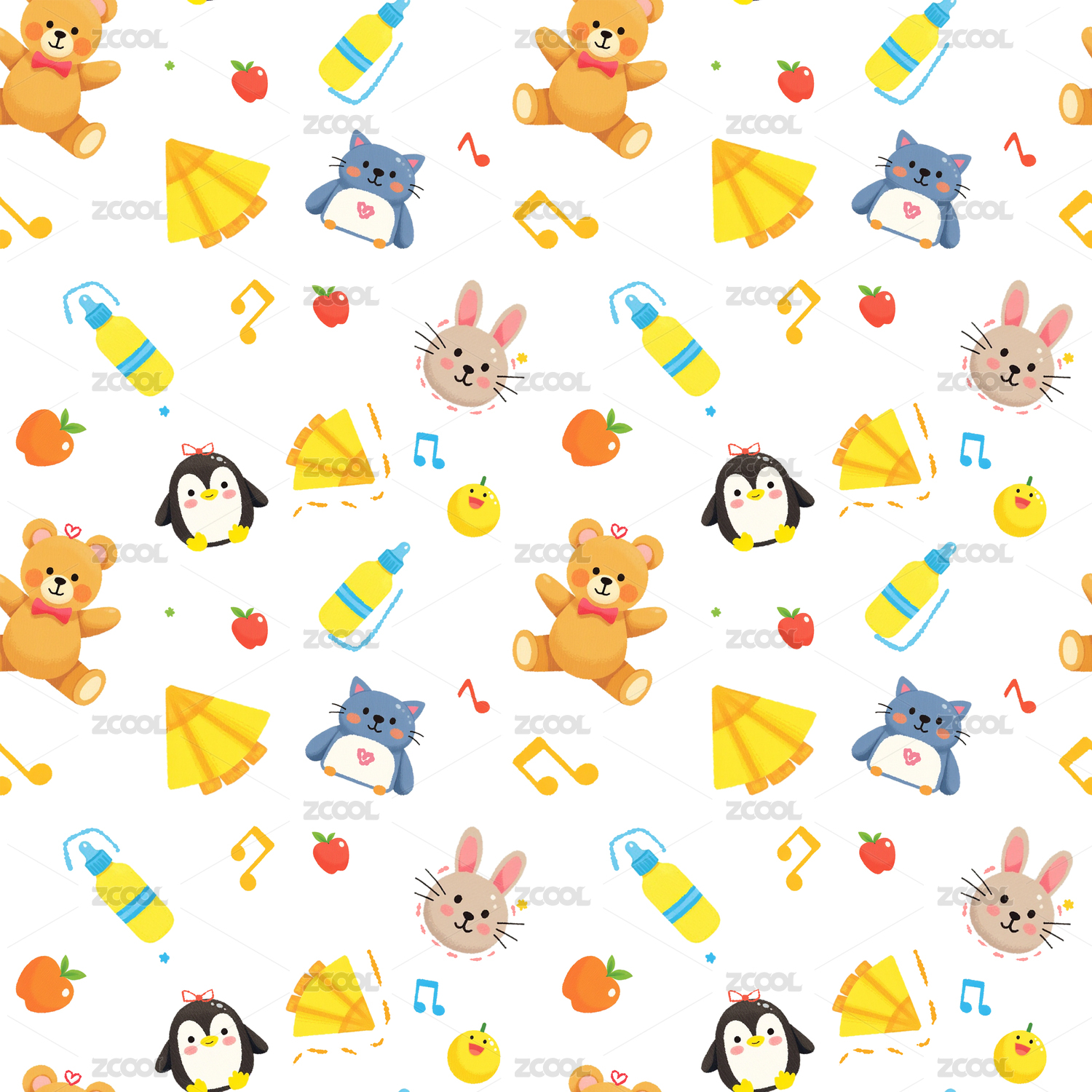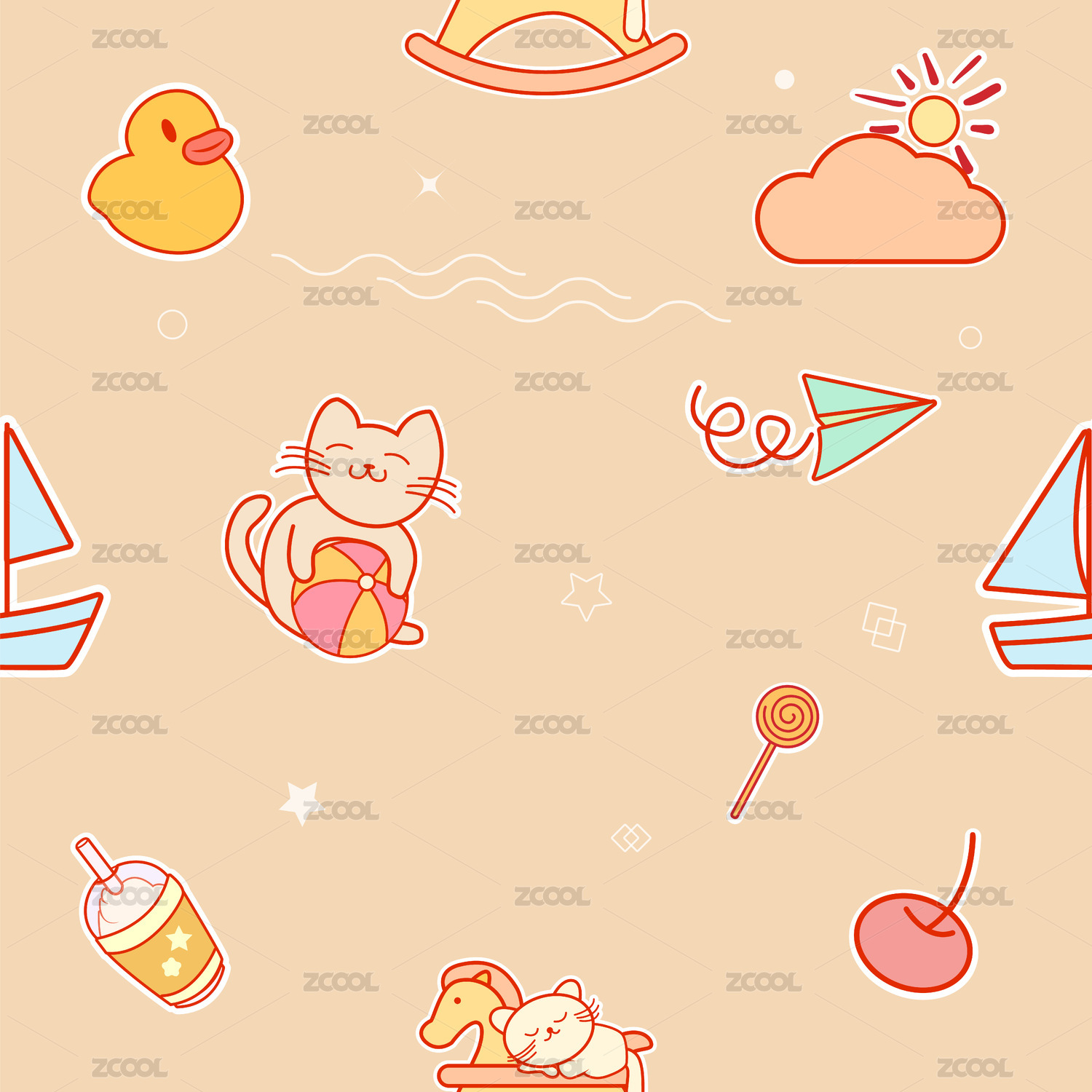 木马猫咪小鸭子帆船四方连续图案无缝纹理图
