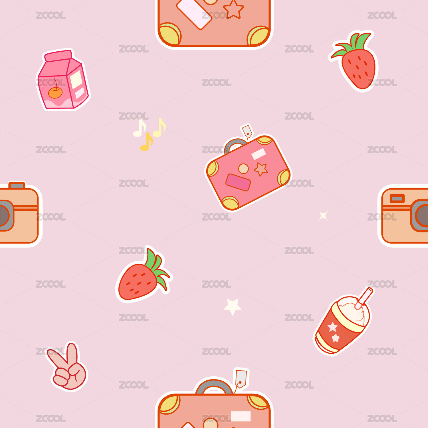 可爱的粉色旅行箱四方连续图案无缝纹理图