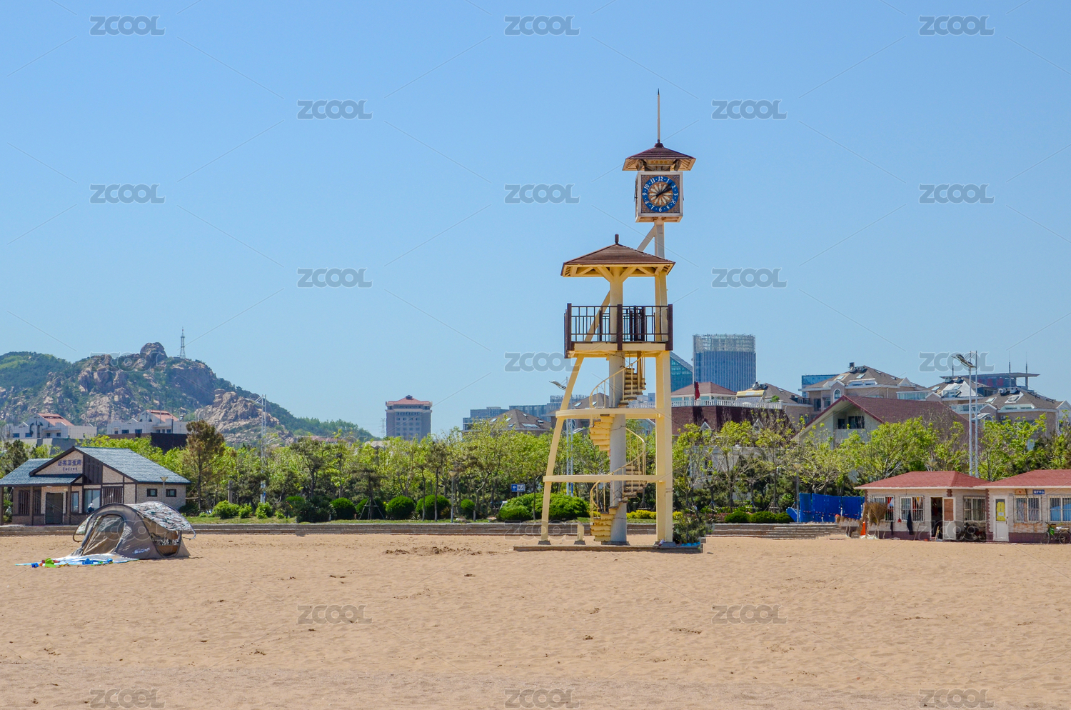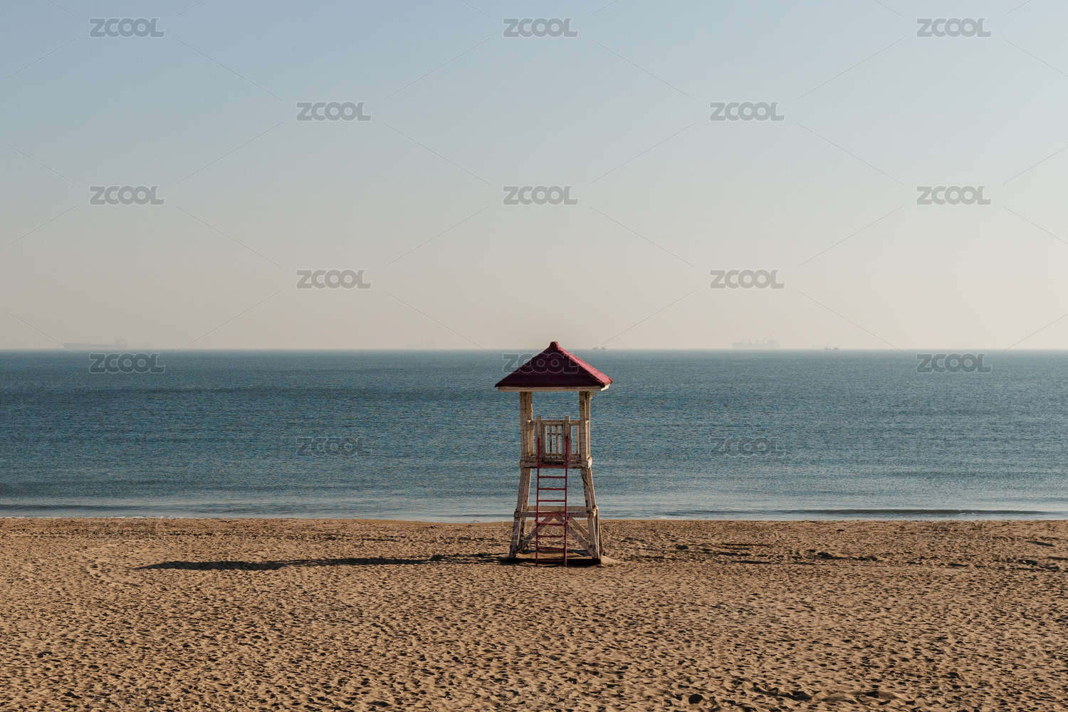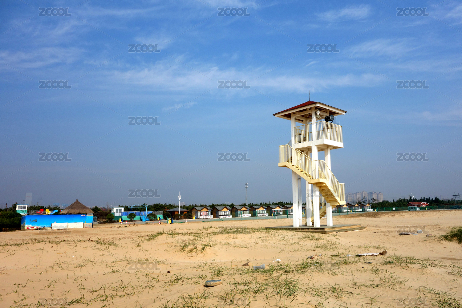 中国秦皇岛北戴河沙滩瞭望塔与蓝海