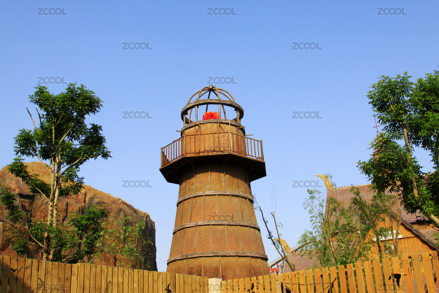 木质瞭望塔与围栏景观