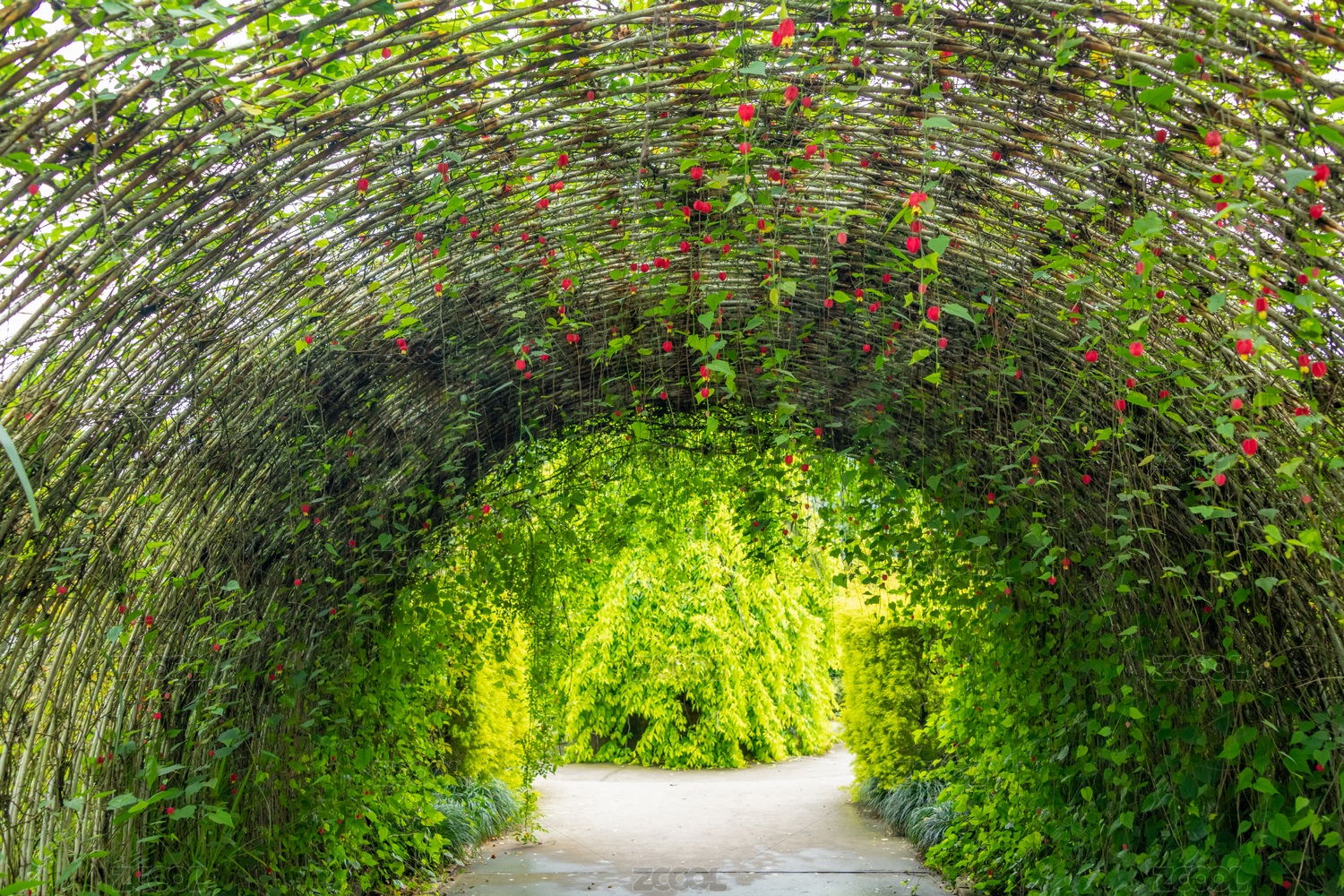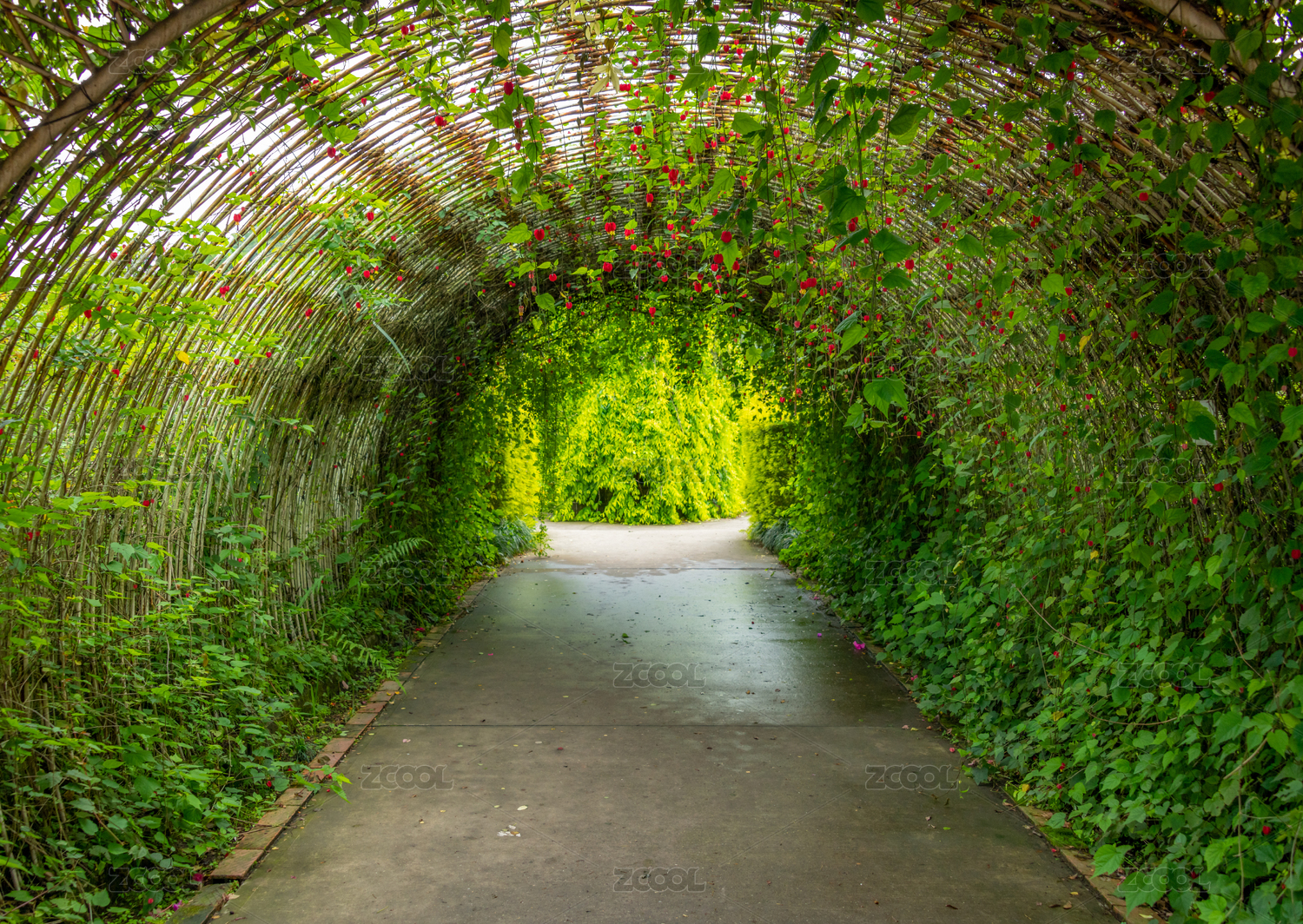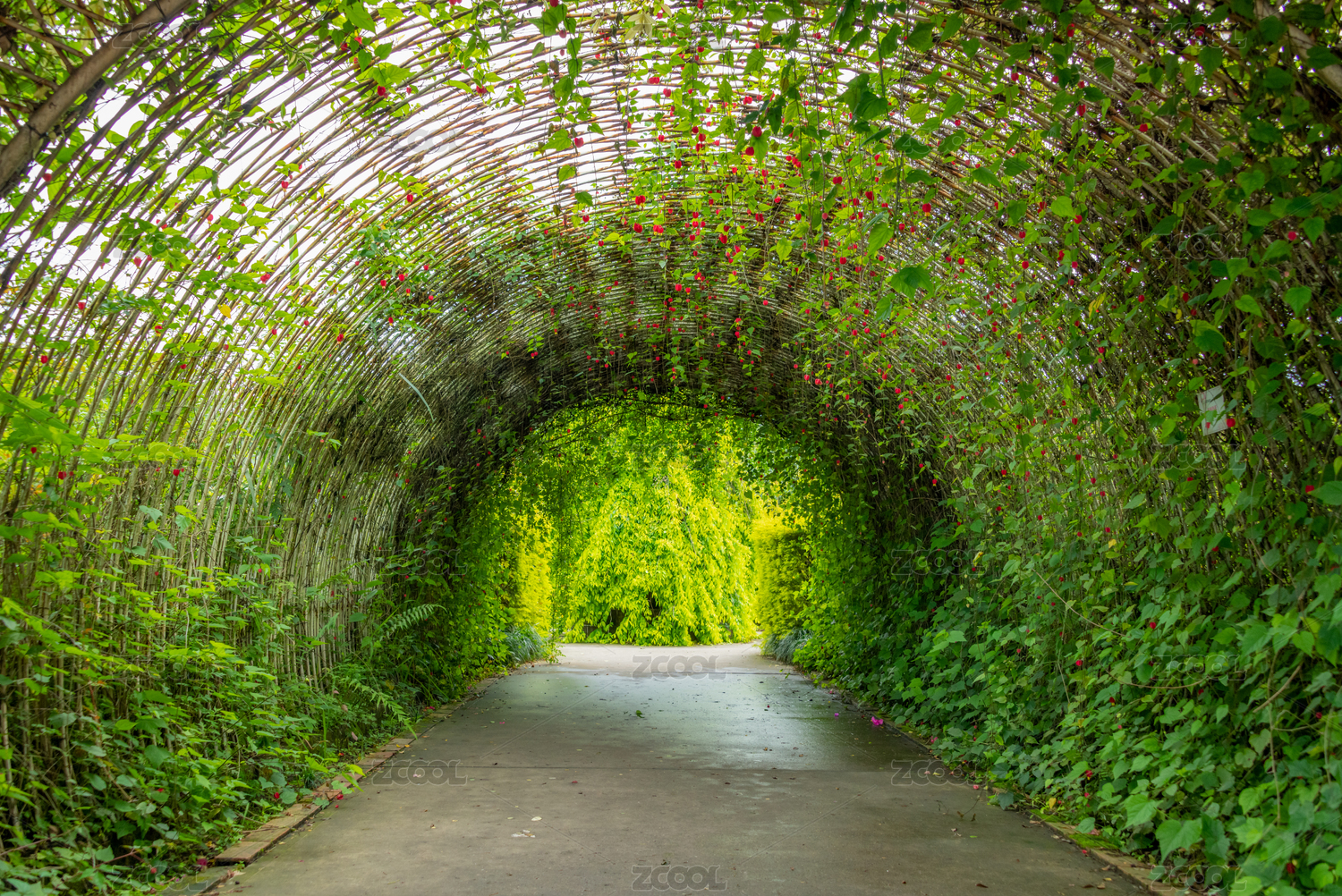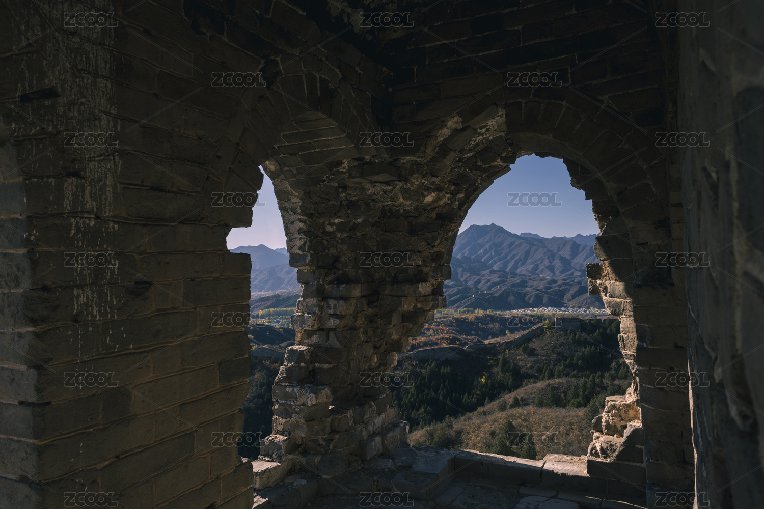 欧式老建筑的红砖墙面及拱形玻璃窗