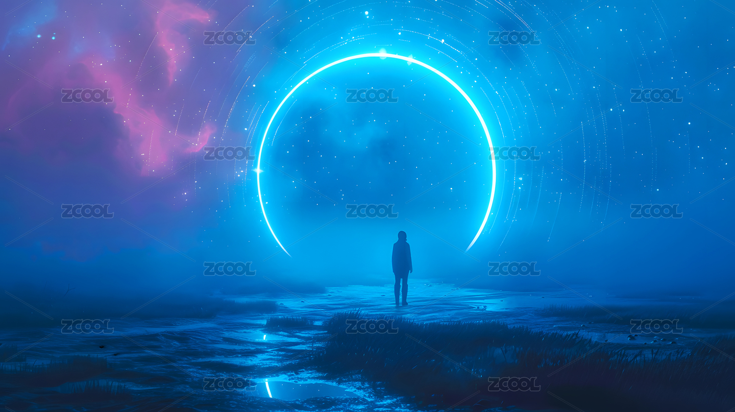 宇宙星空传送门前的旅人