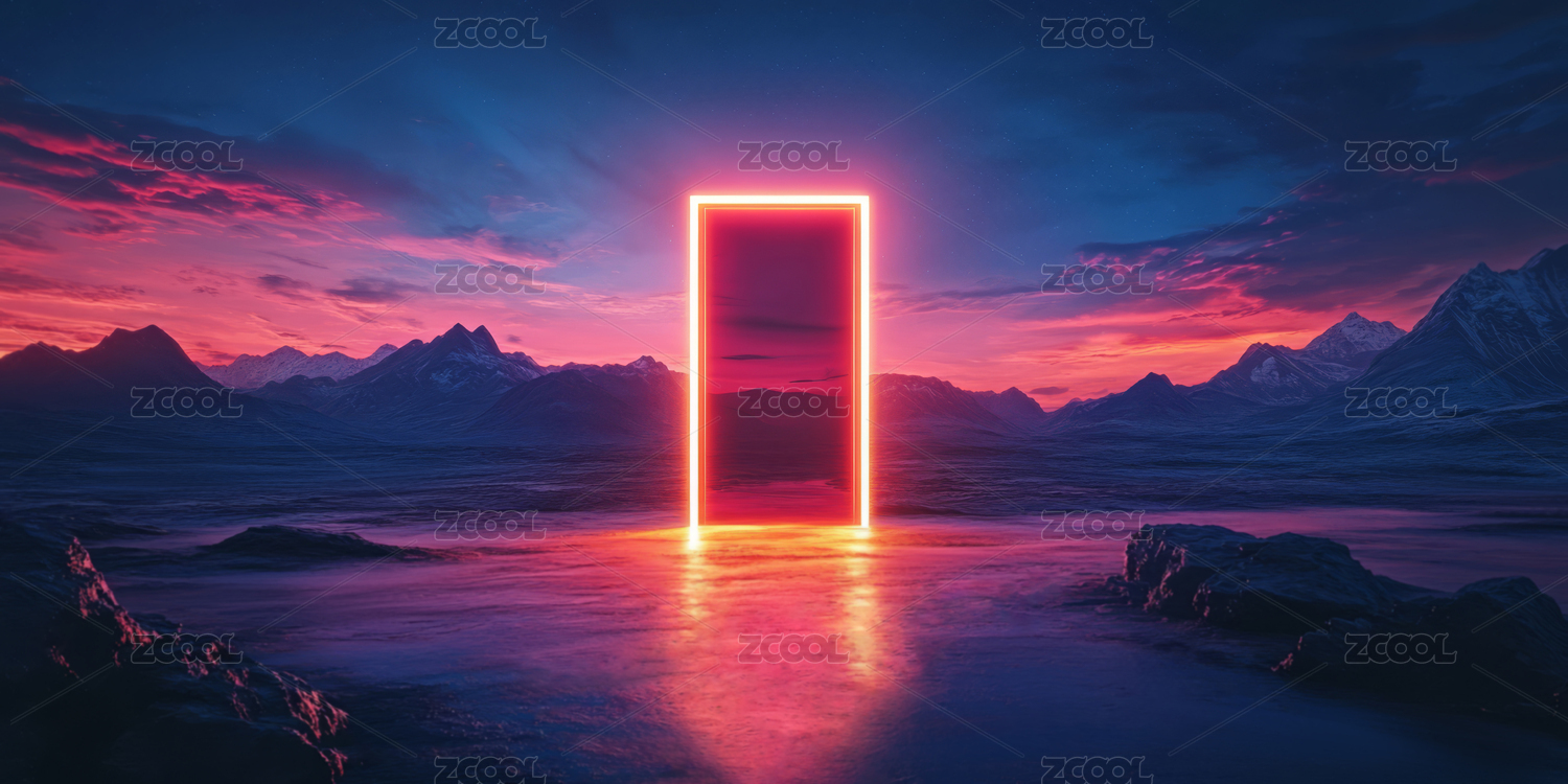 晚霞山谷中发光的门