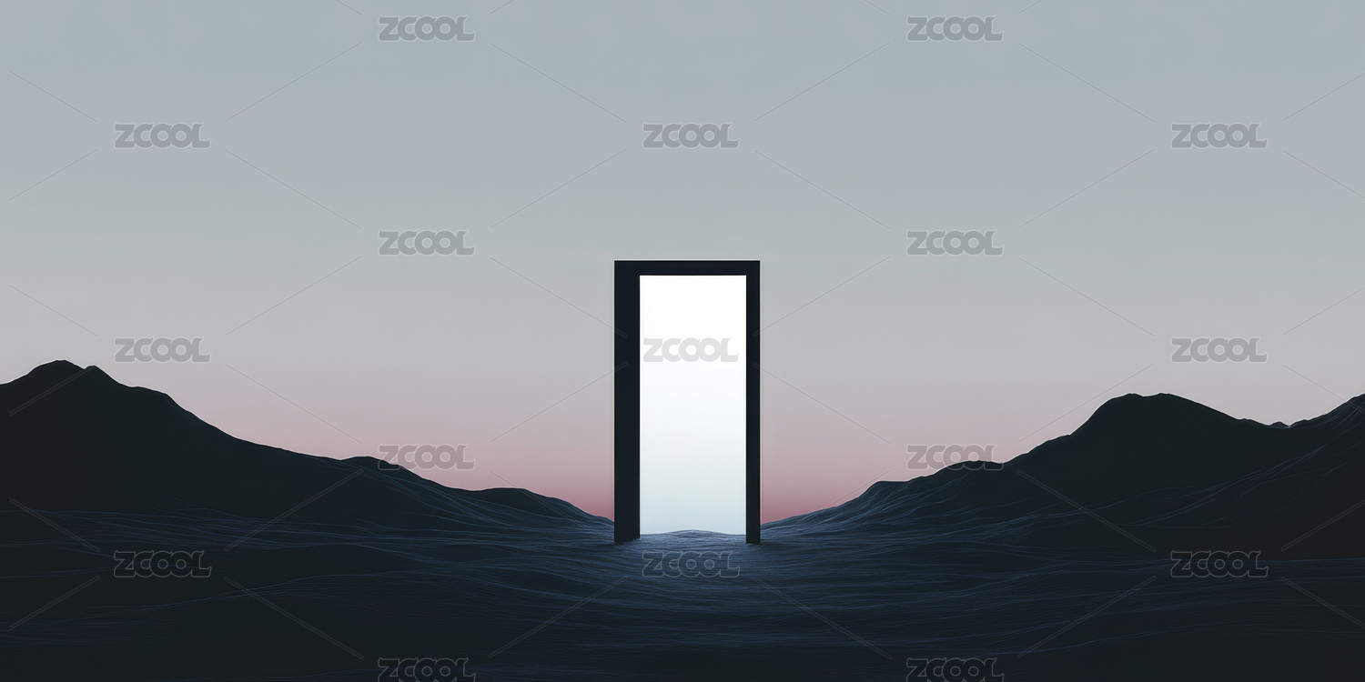 简约黑色山谷中的传送之门