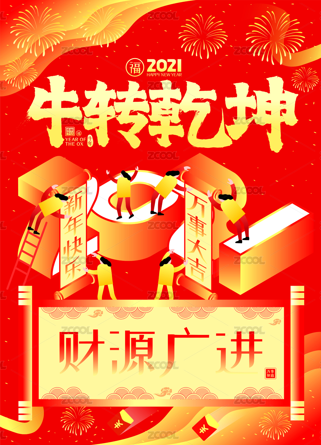 2021牛转乾坤牛年红包鞭炮矢量书法字