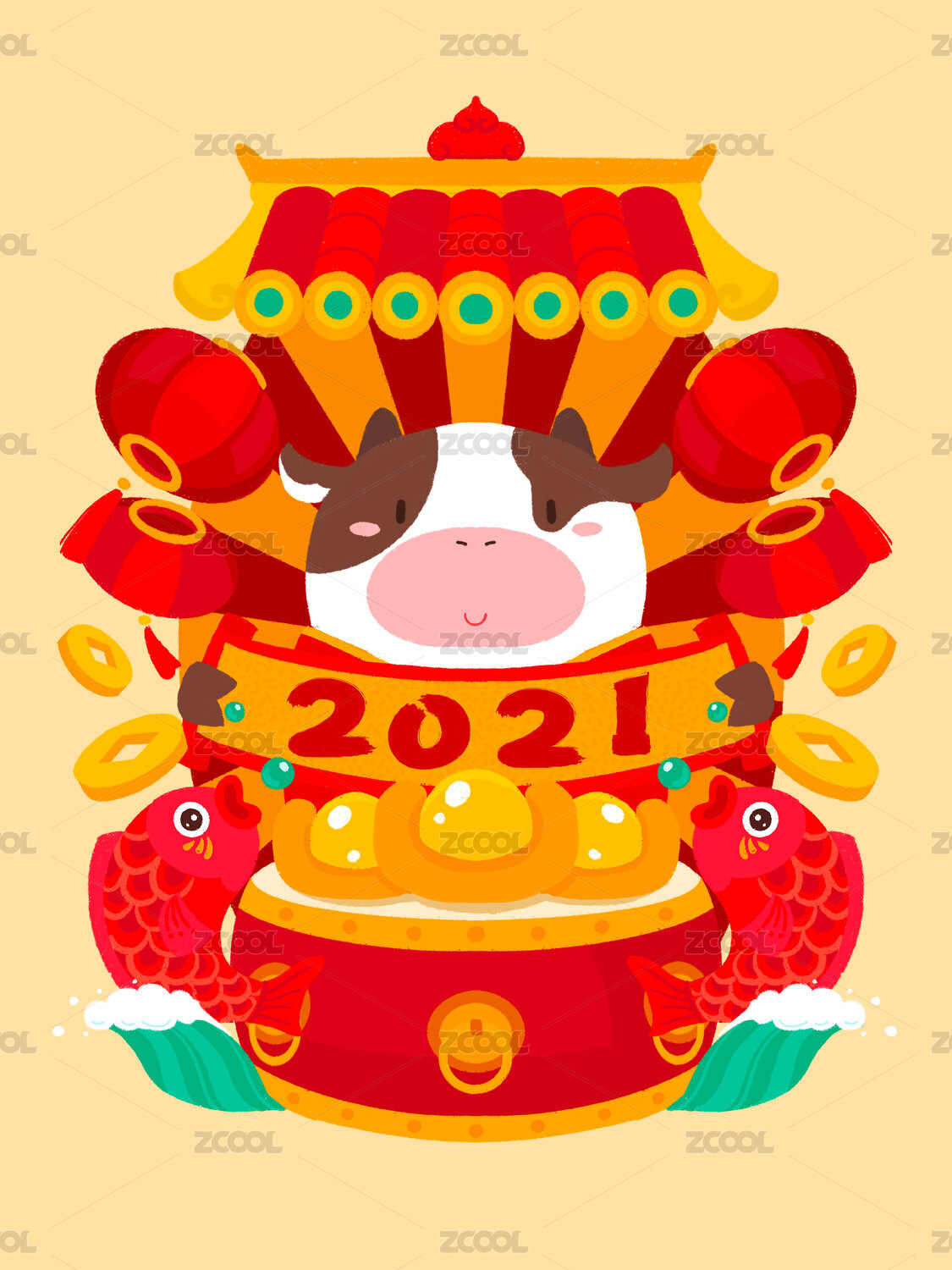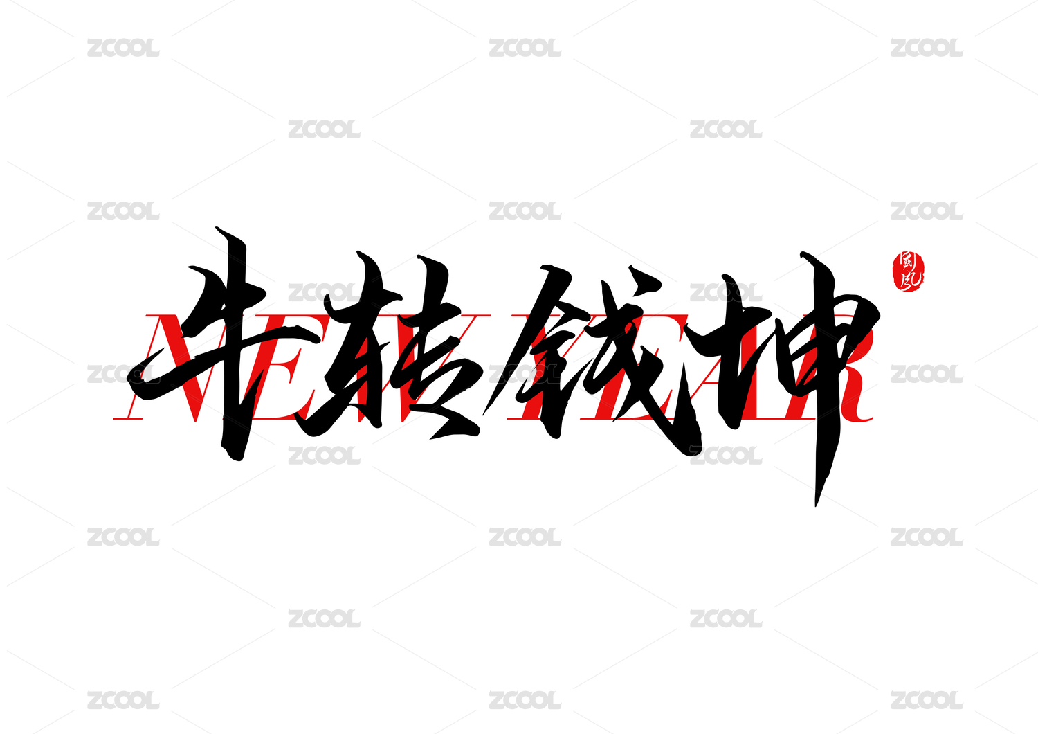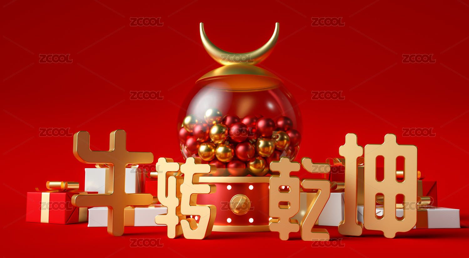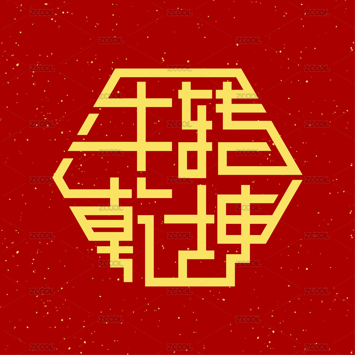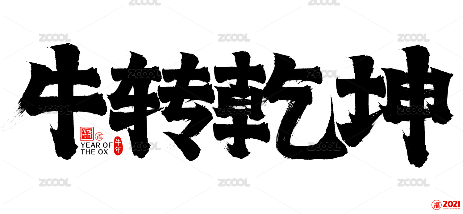 牛转乾坤2021牛年红包灯笼矢量书法字