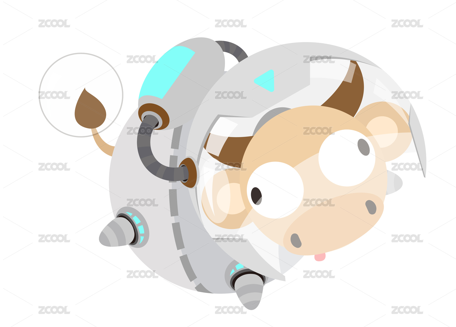 2021穿着防护服的牛抗疫年可爱矢量形象