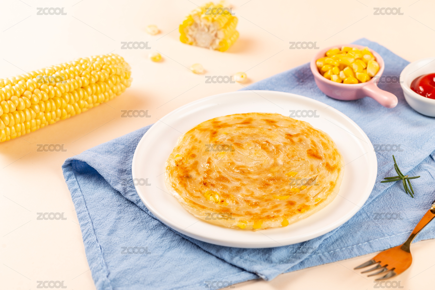 白色背景上满满一盘美味的玉米葱油饼