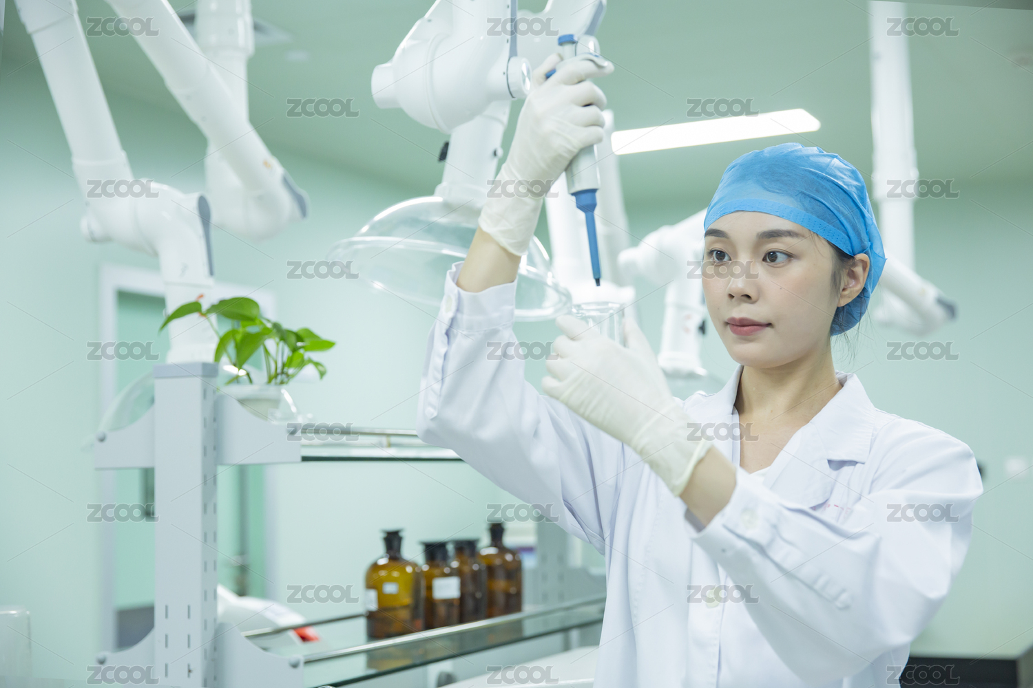 医疗实验及科学研究常用的玻璃器皿白色液体