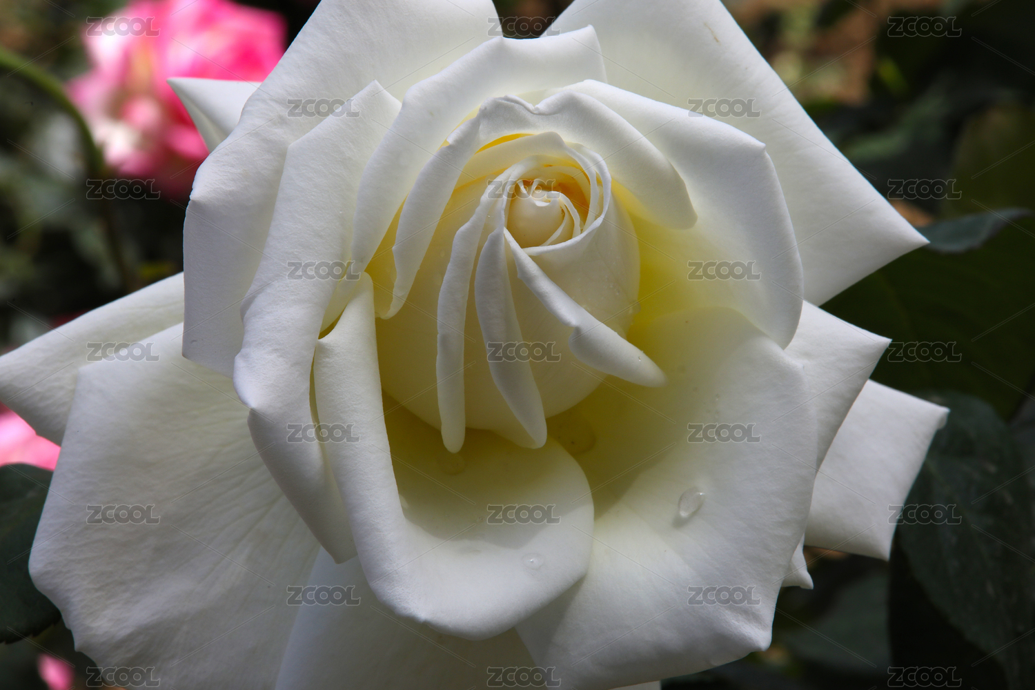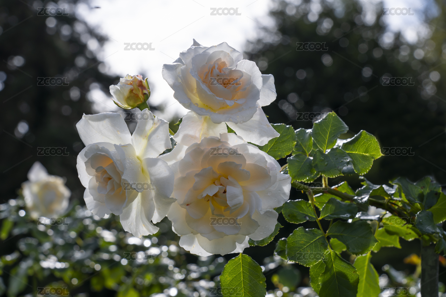 带有水珠的白色月季花