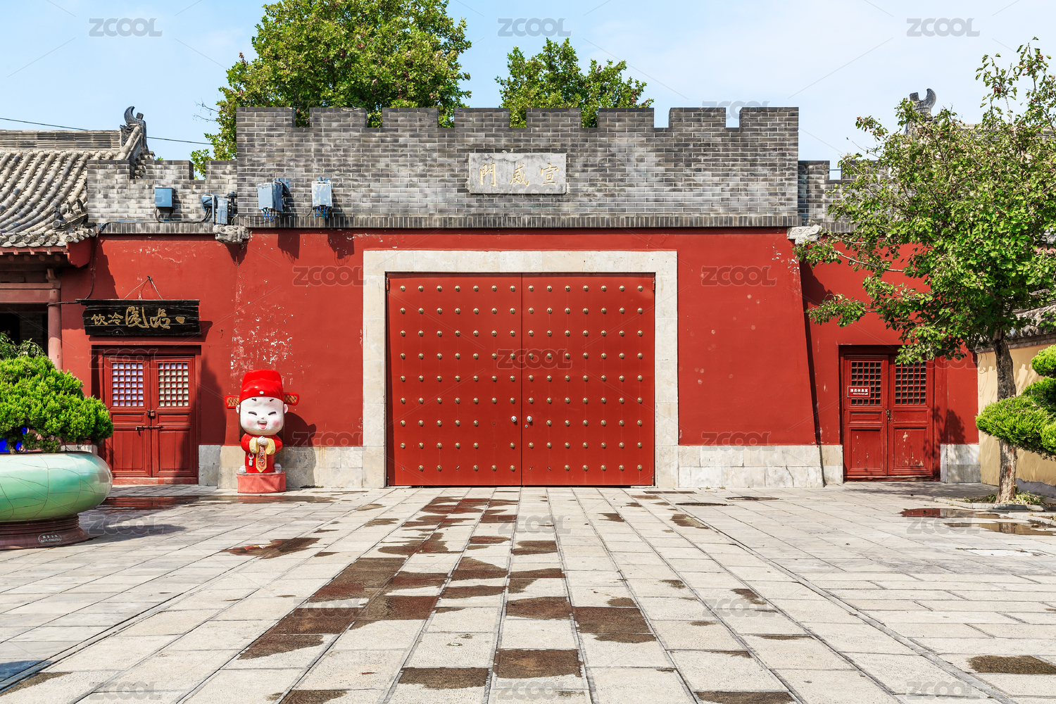 中国开封开封府包公湖景区古建筑大门广场