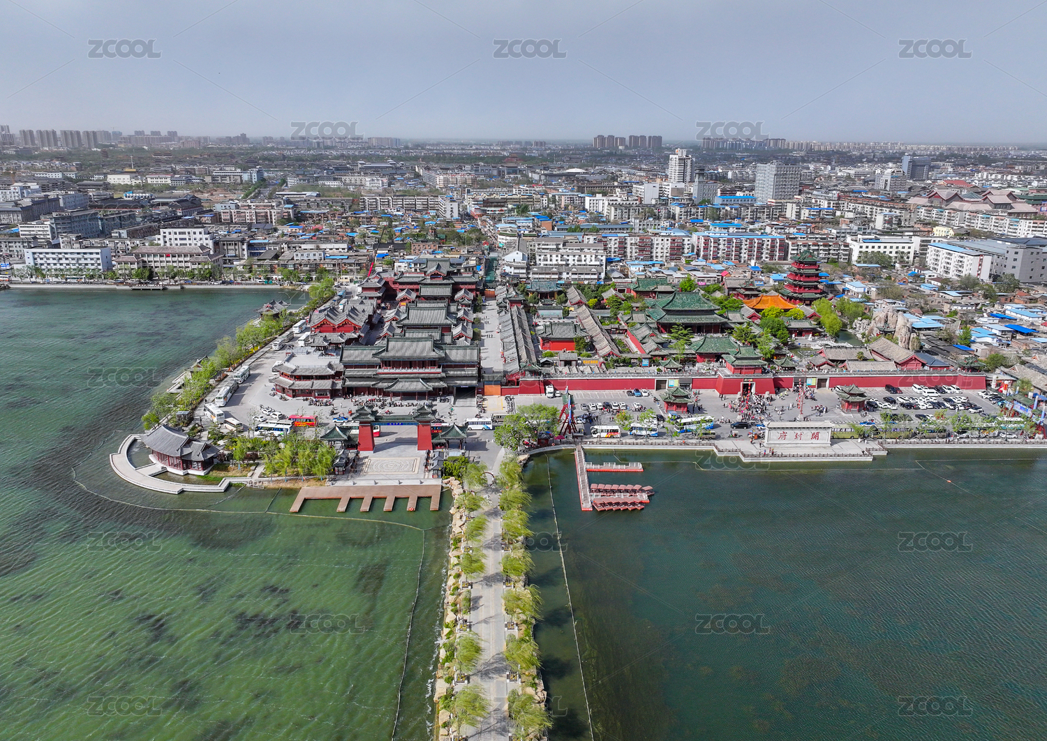 航拍河南北宋开封府包公湖北岸宋代衙署景区