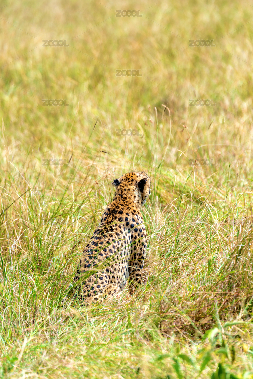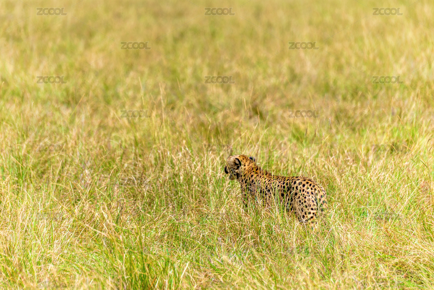 非洲大草原上的猎豹隐蔽在草丛间