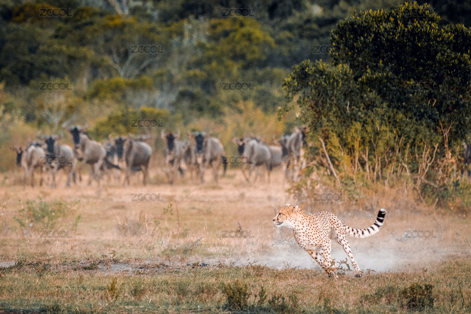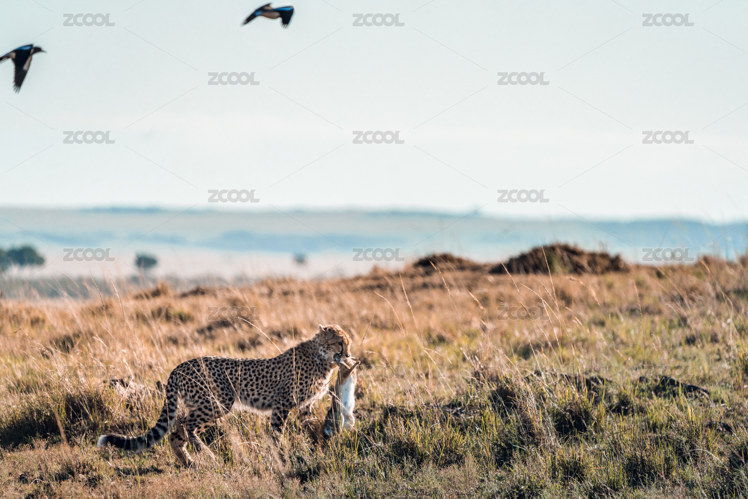 非洲肯尼亚马赛马拉草原上捕食的猎豹