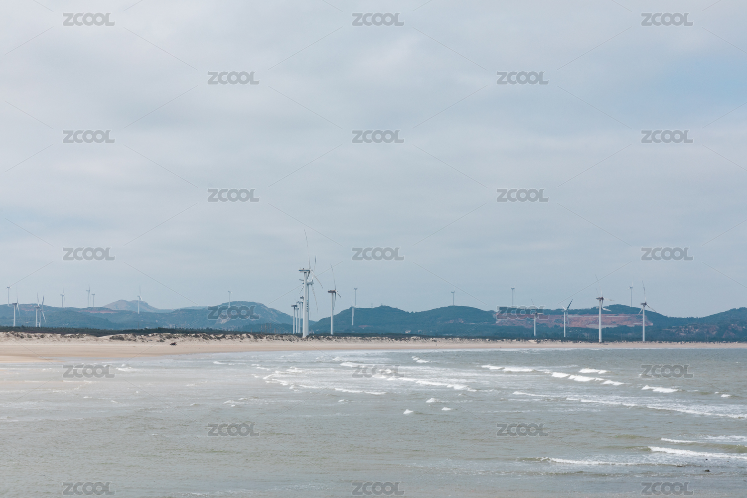 福建平潭岛落日夕阳彩霞长江澳的风车田