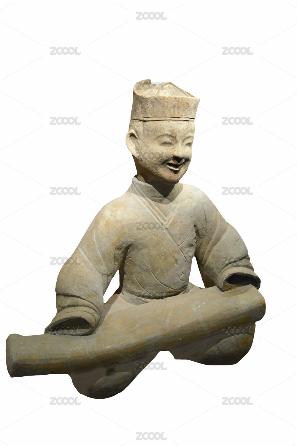 两汉时期陶制俳优俑 东汉陶抚琴俑