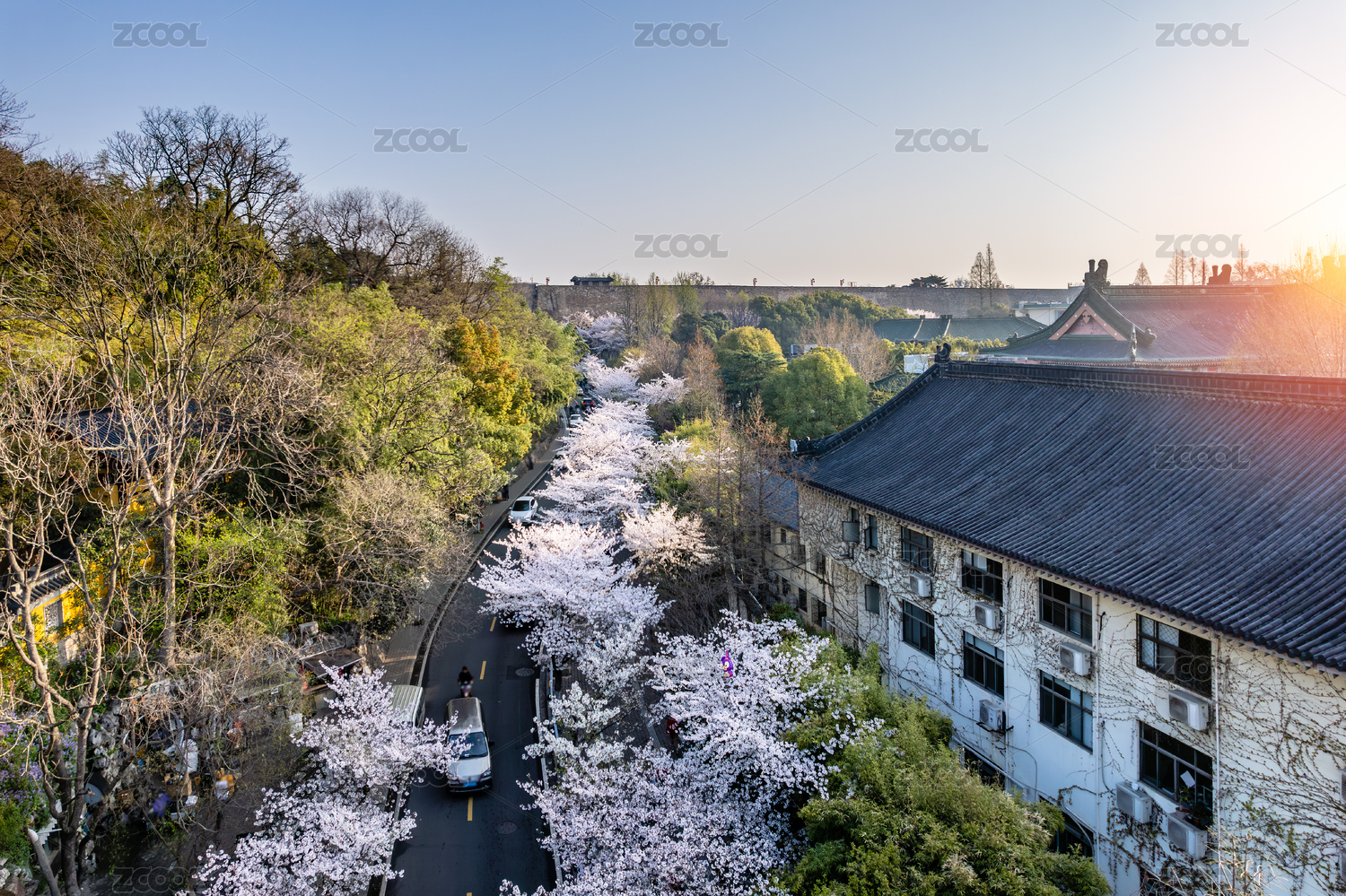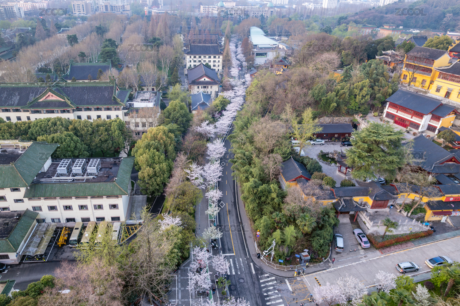 春天樱花季中国南京解放门鸡鸣寺路风景航拍