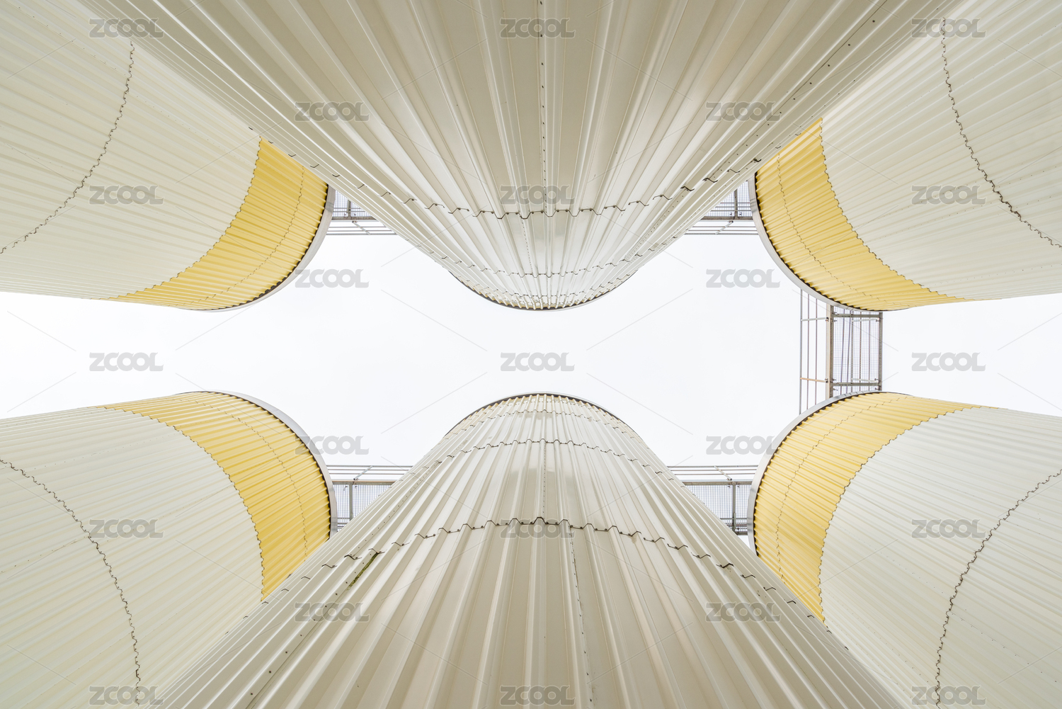 低视角拍摄深圳金威啤酒厂储存罐遗址