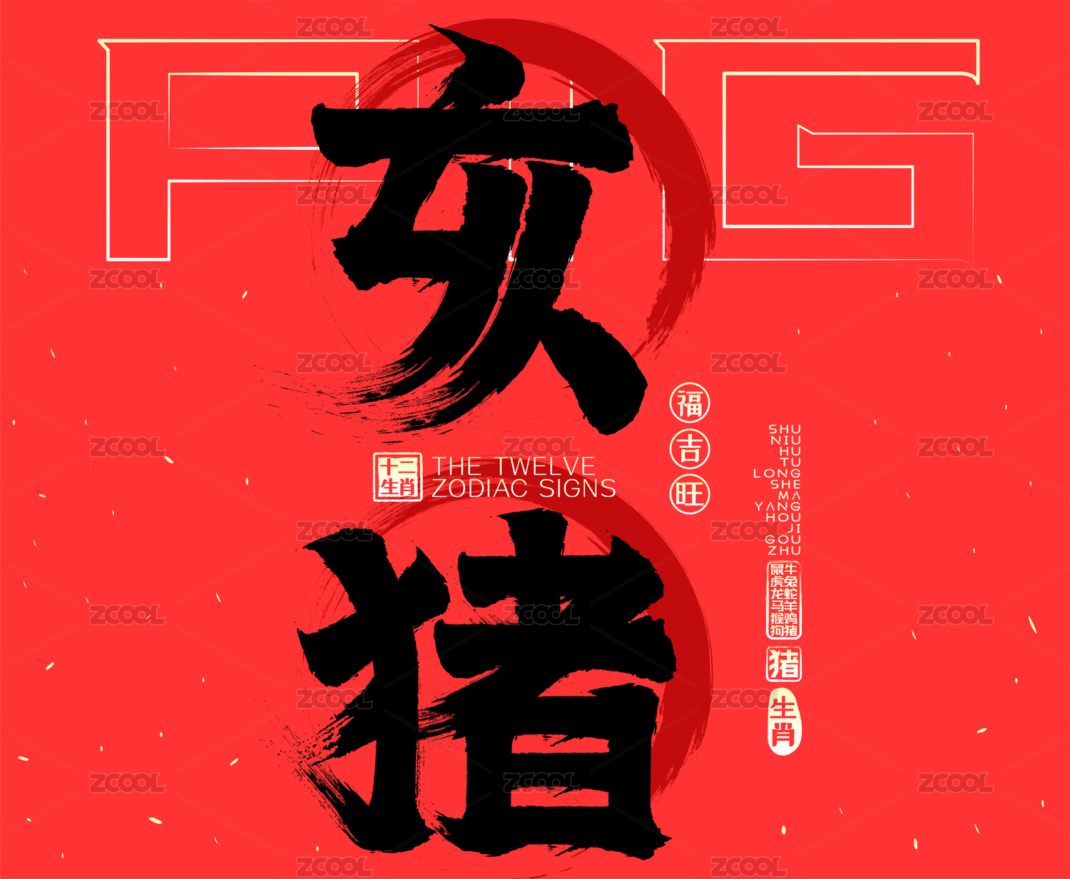 亥猪十二生肖喜庆水墨中国风矢量书法字