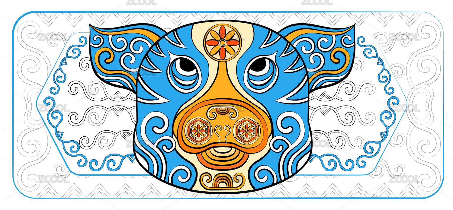 猪印花图案十二生肖中国传统纹样矢量插画