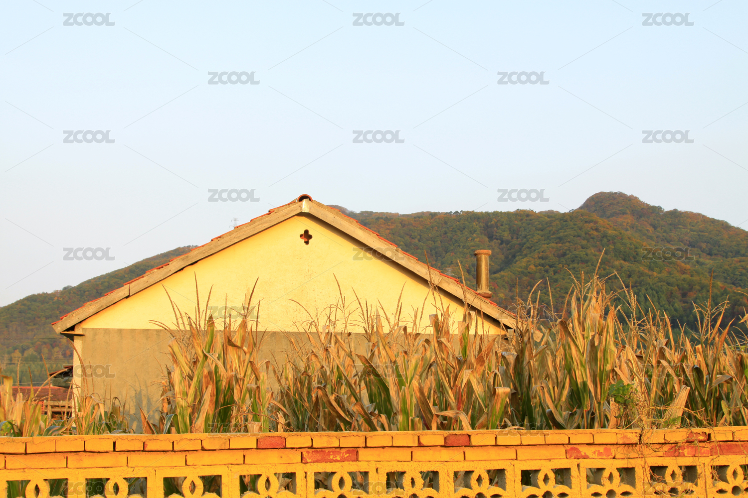 航拍冬天夕阳下的中国山东淄博乡村房屋