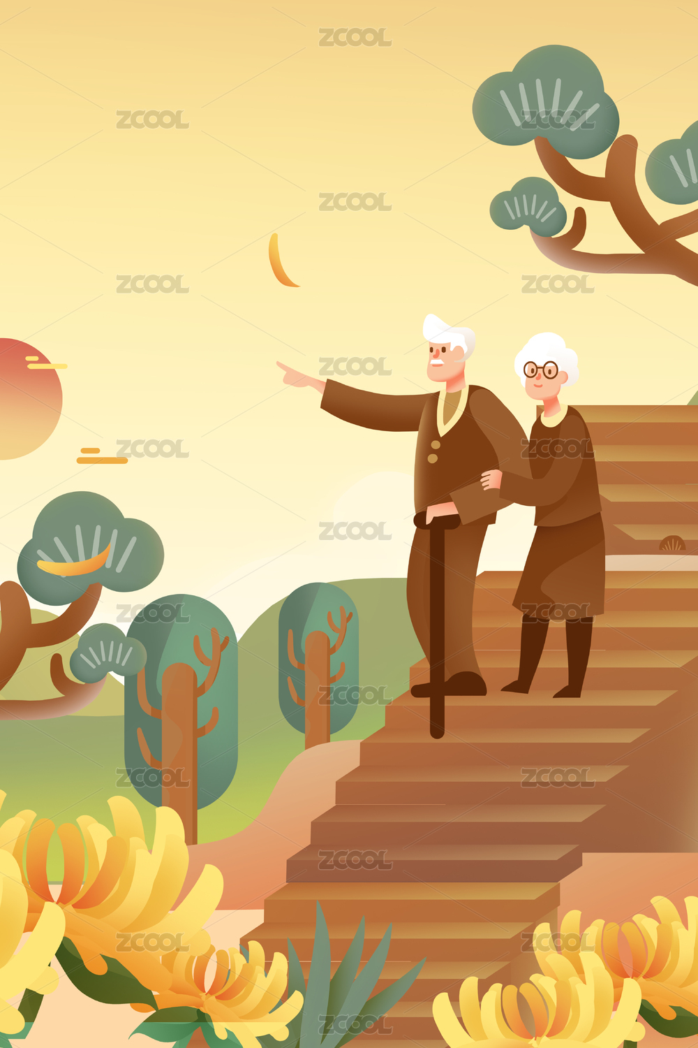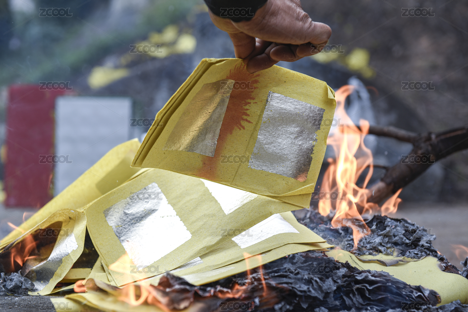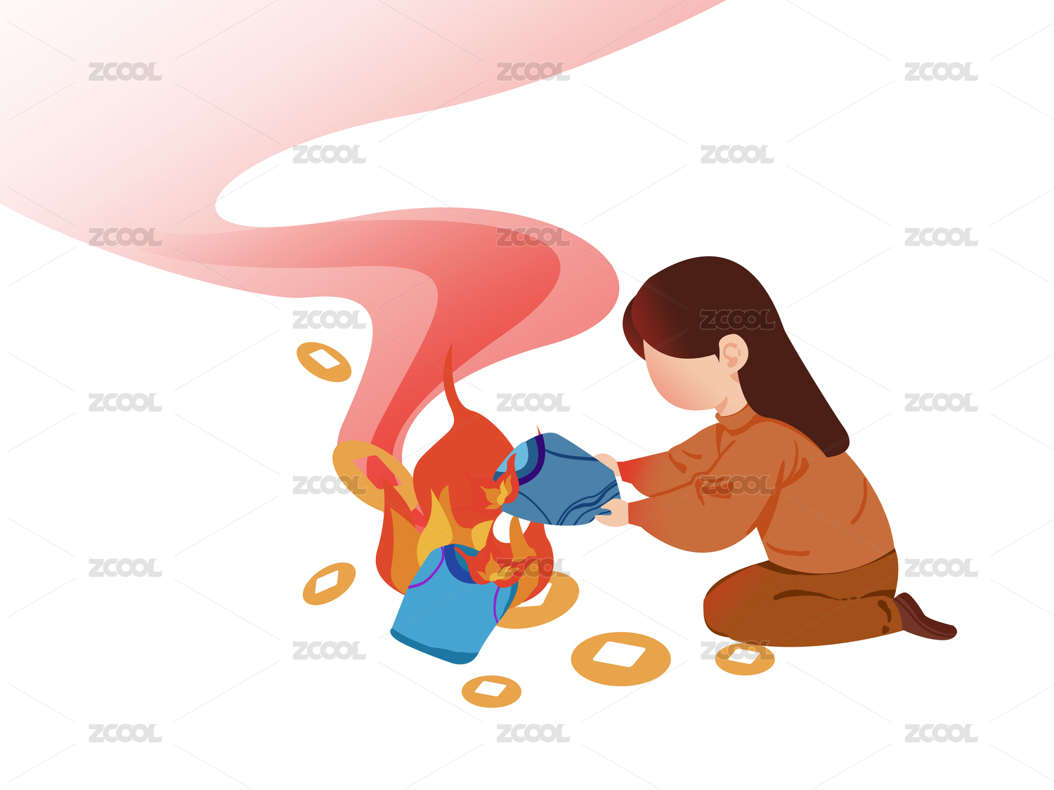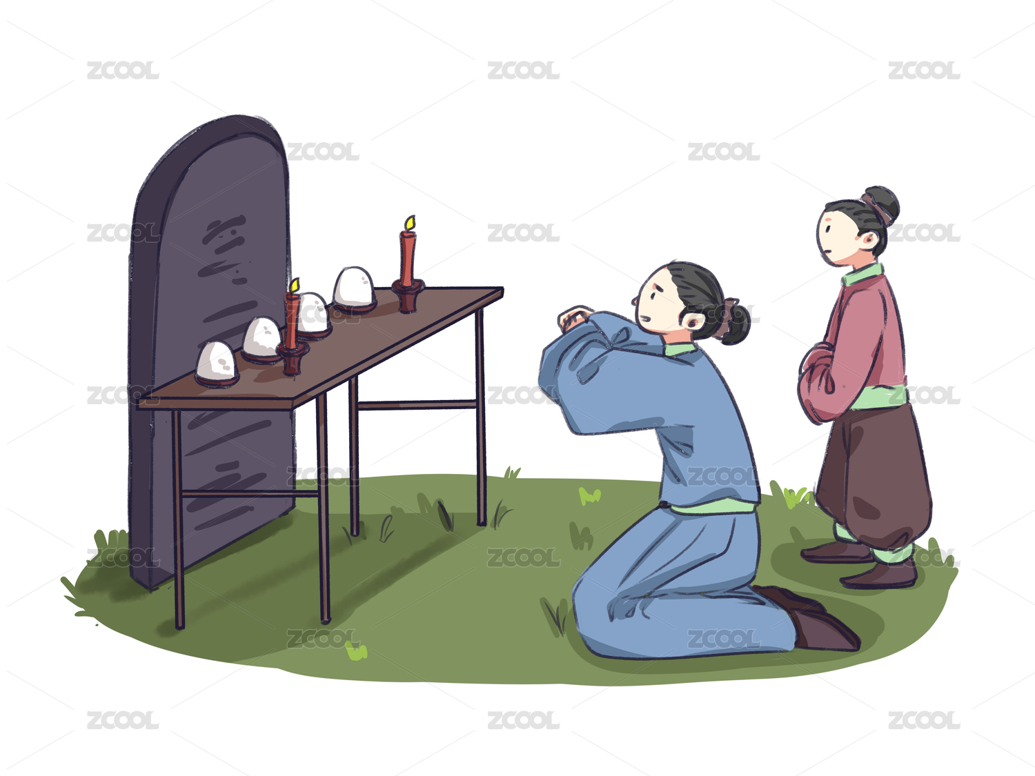 灰棕色老人小孩祭拜祖先寒衣节人物祭祀先人