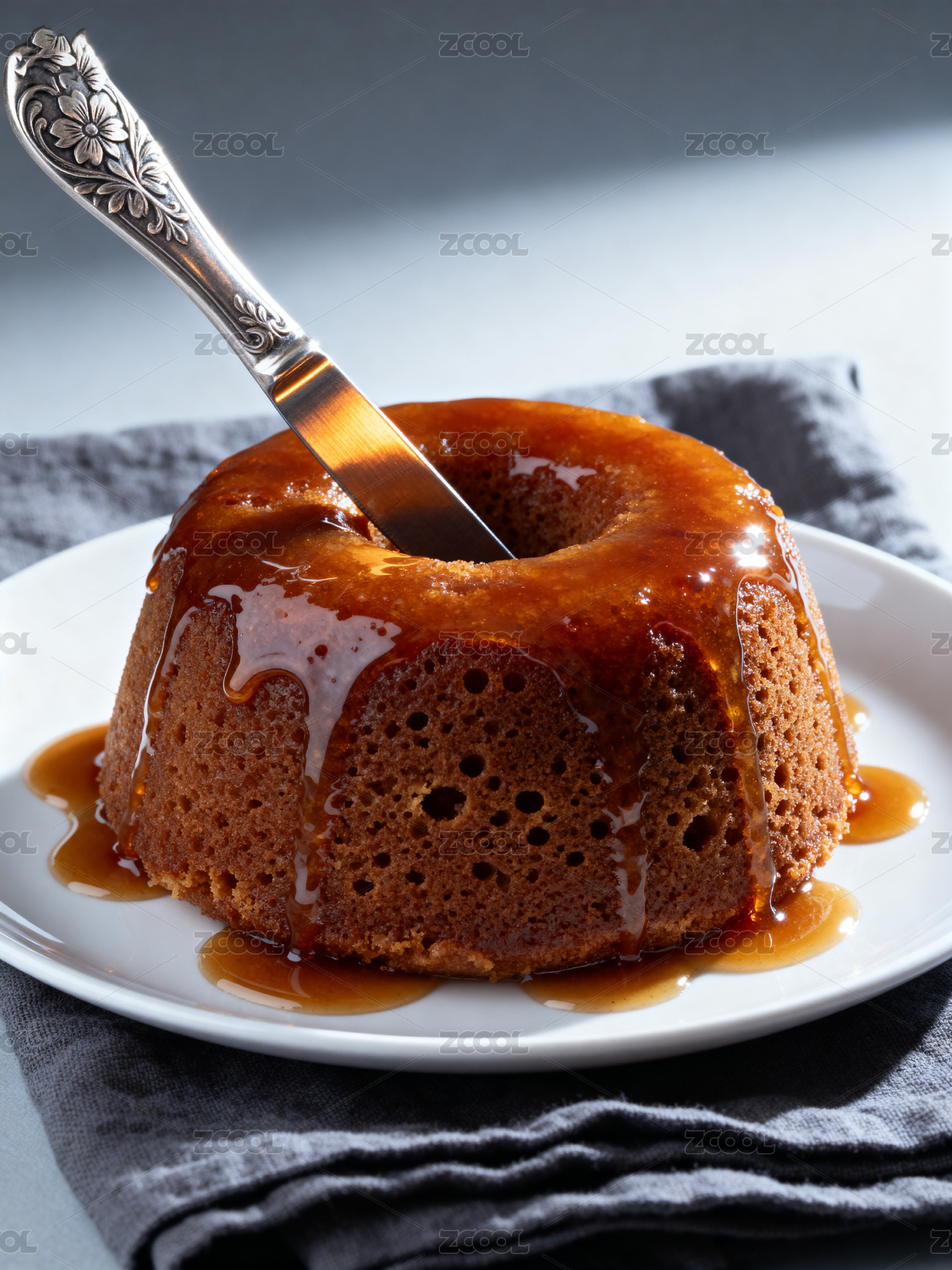 焦糖蛋糕配银勺