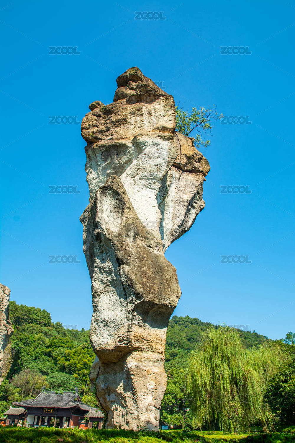 中国浙江绍兴柯岩风景区标志景点石柱云骨