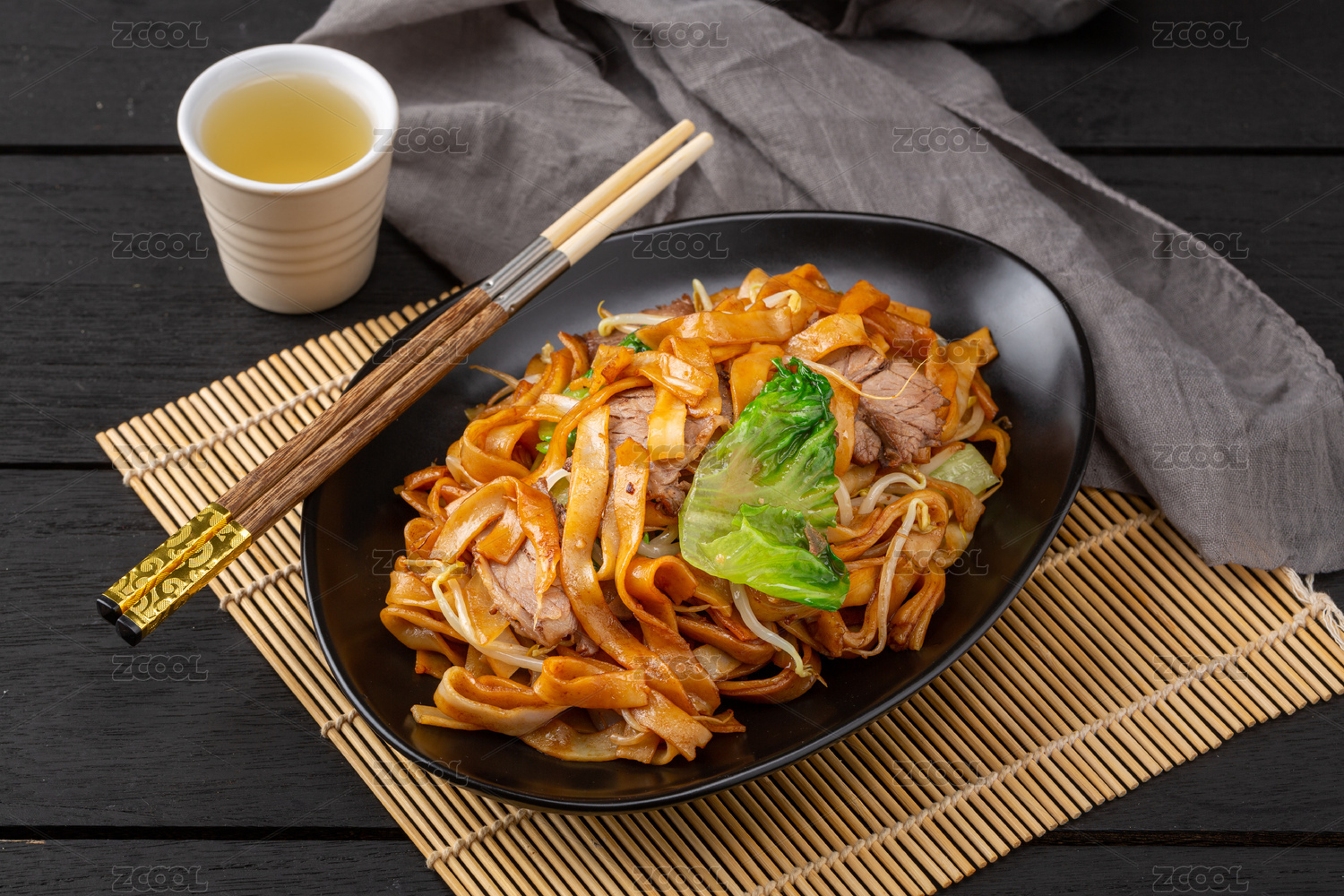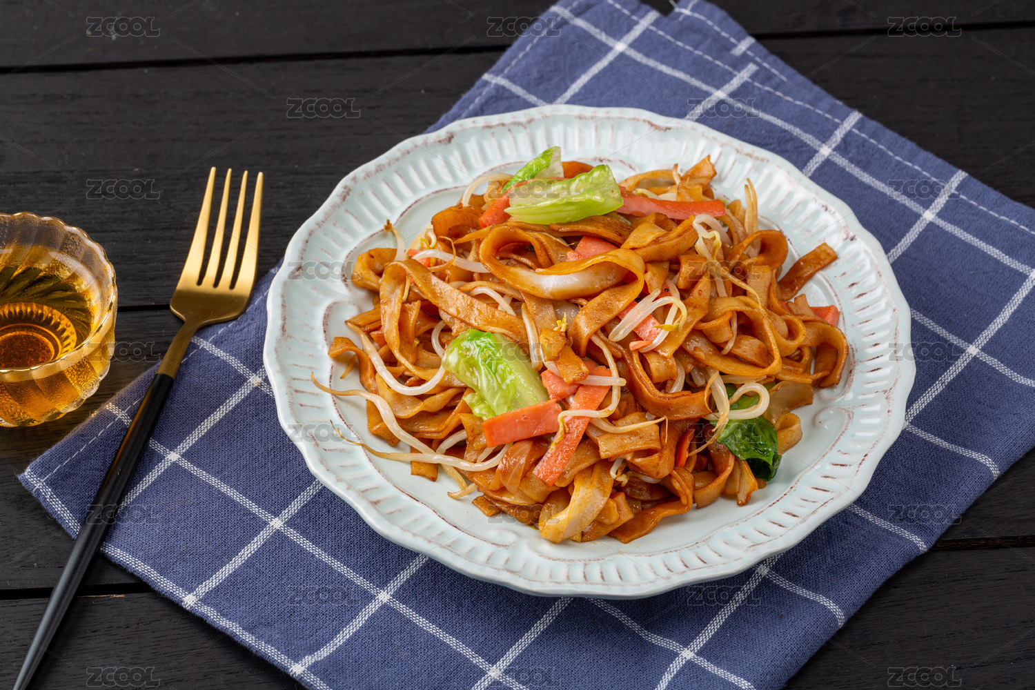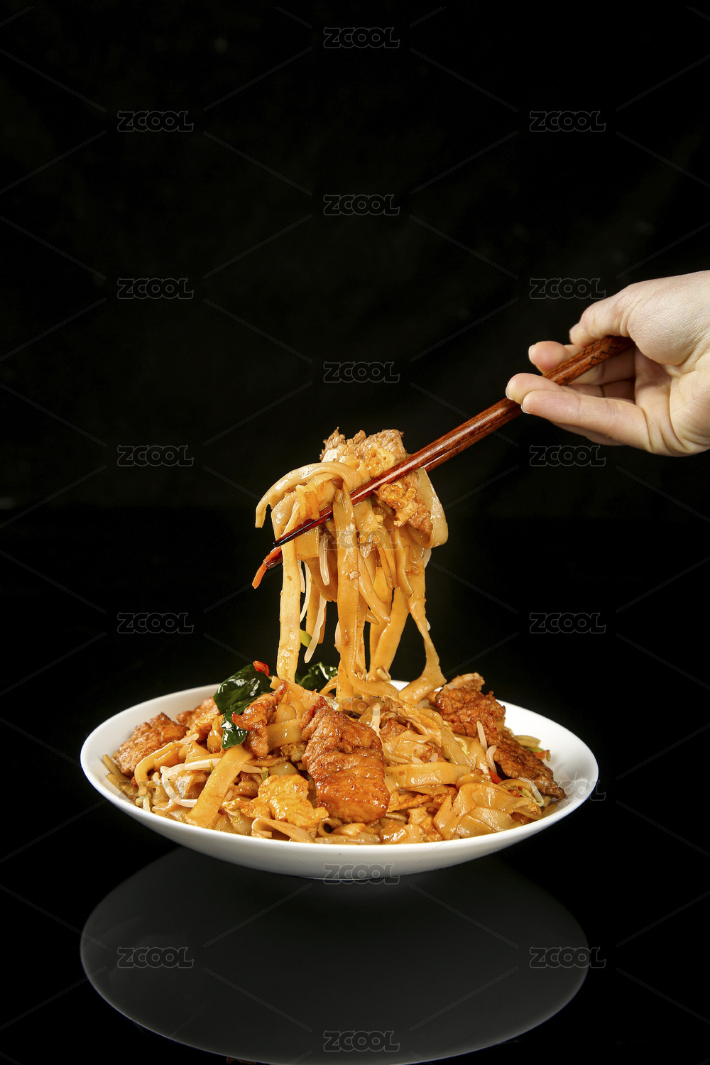 木底上的炒河粉