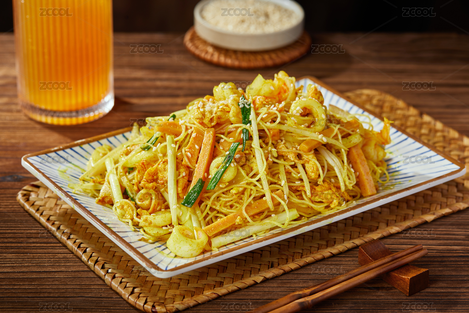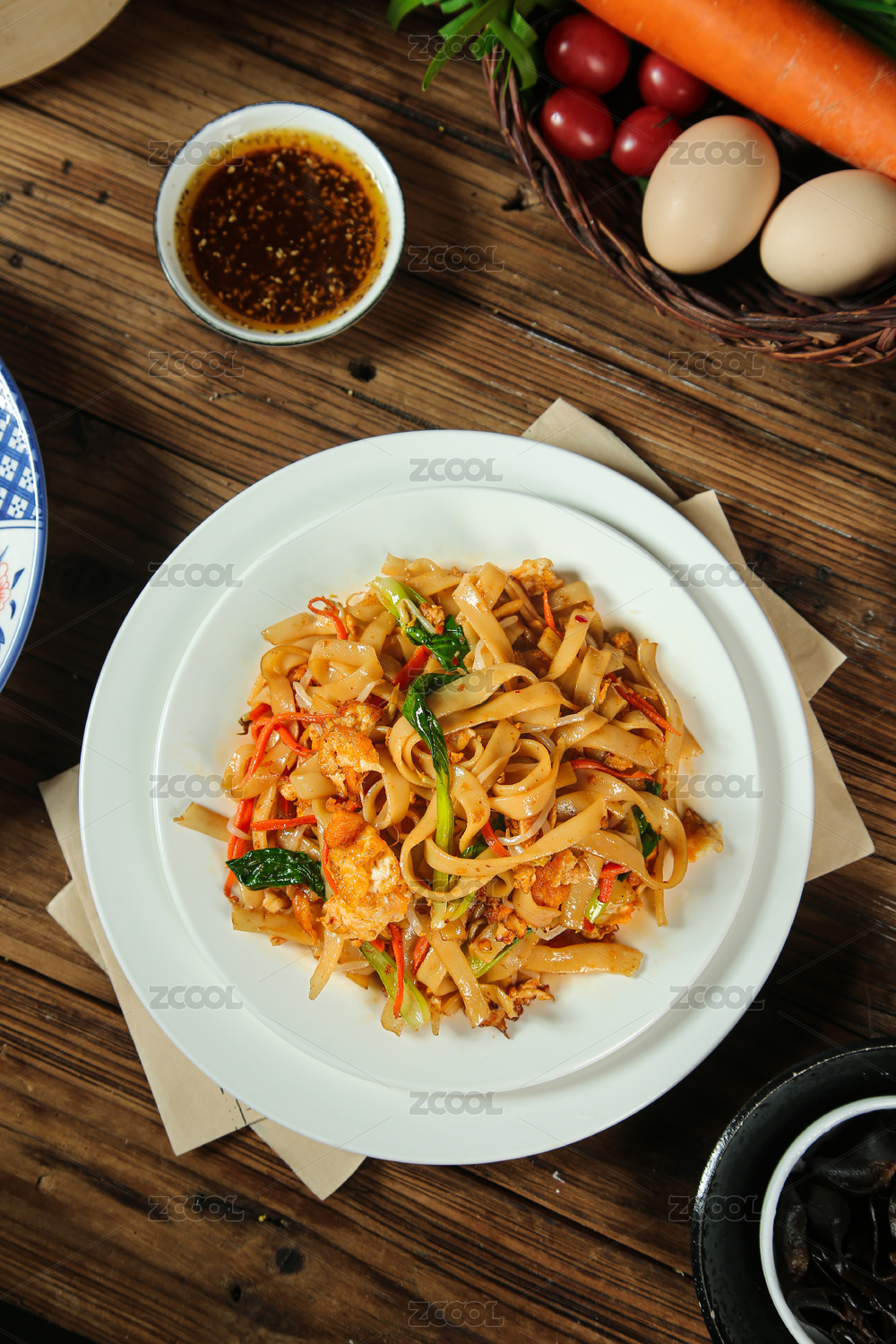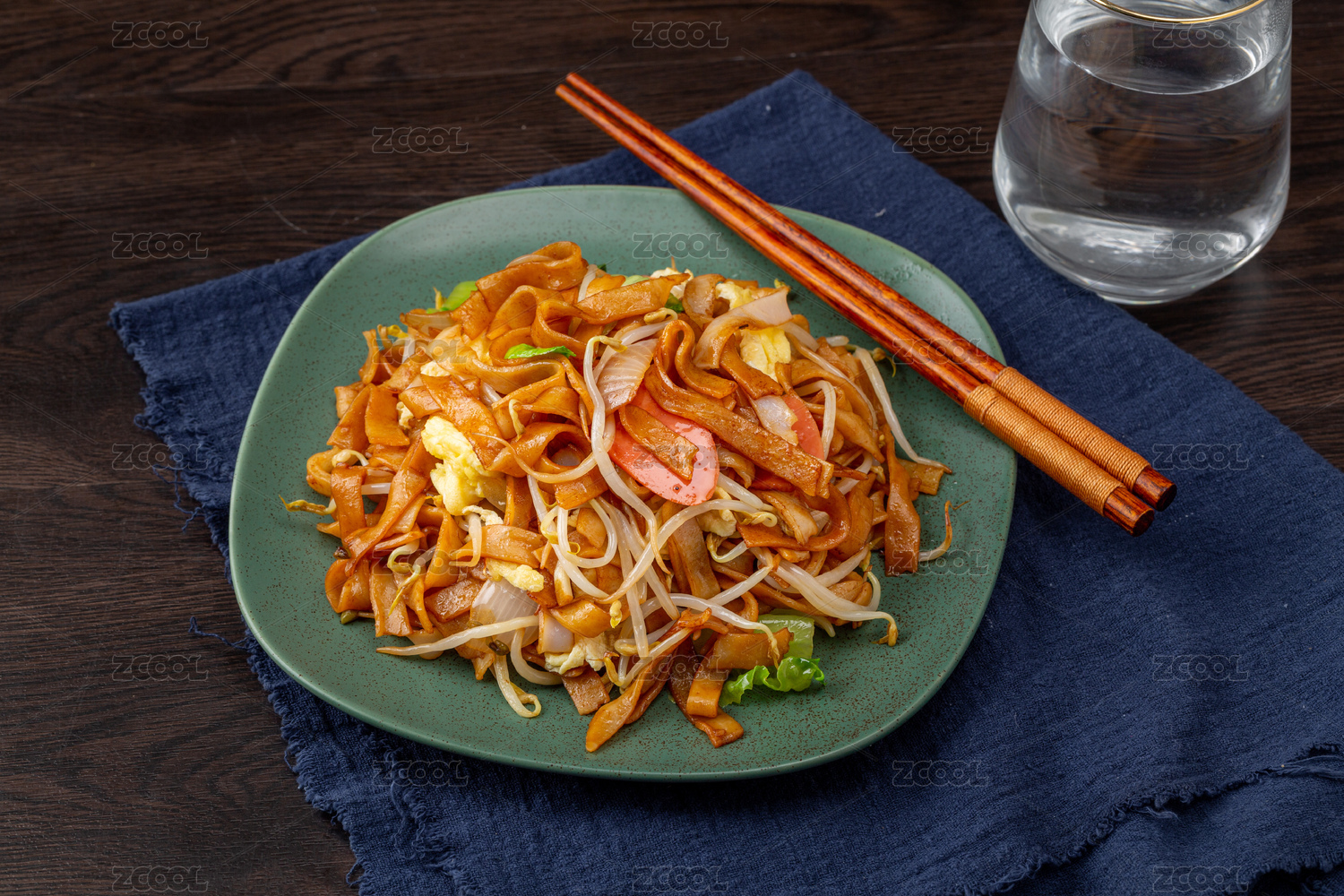 木底上的炒河粉