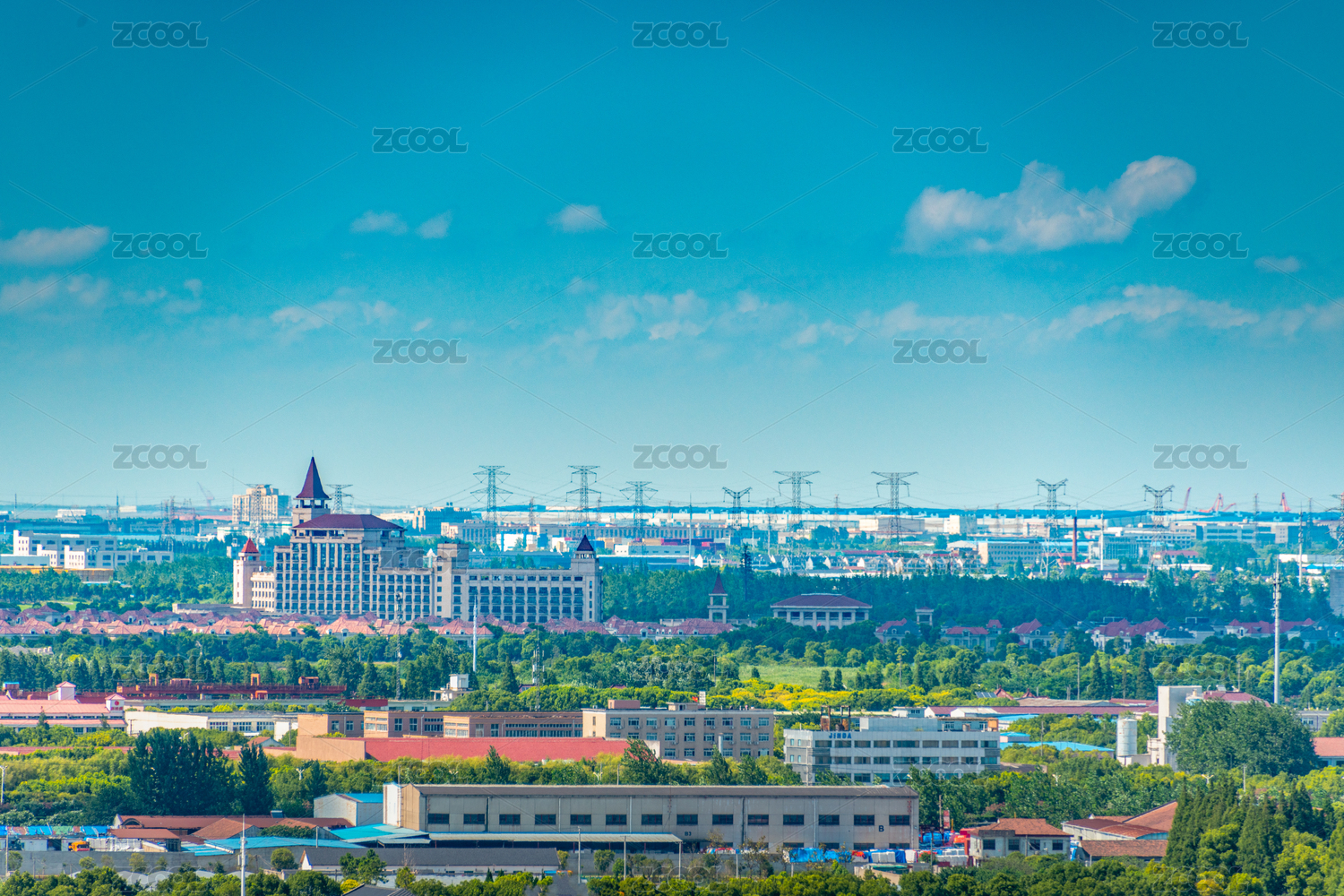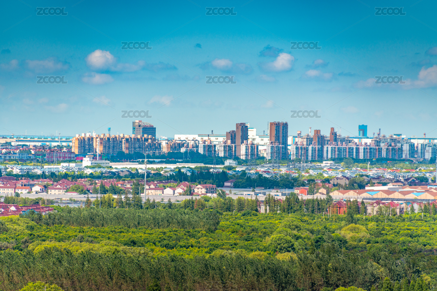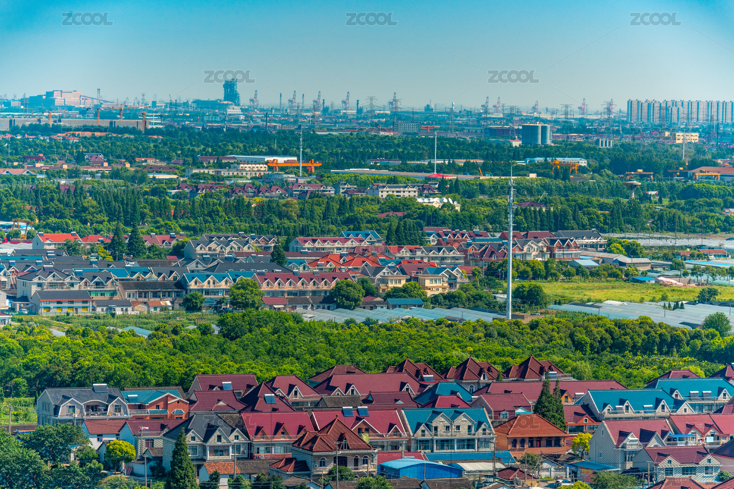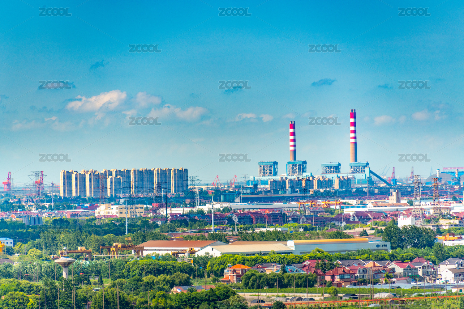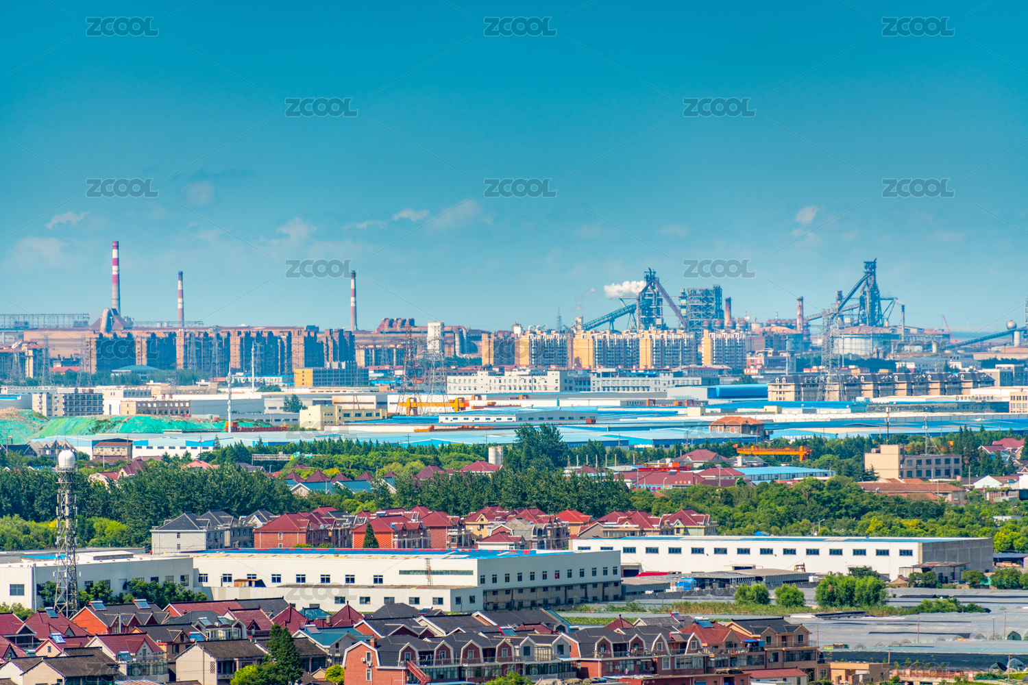 中国上海市的工业厂区和附近的民宅