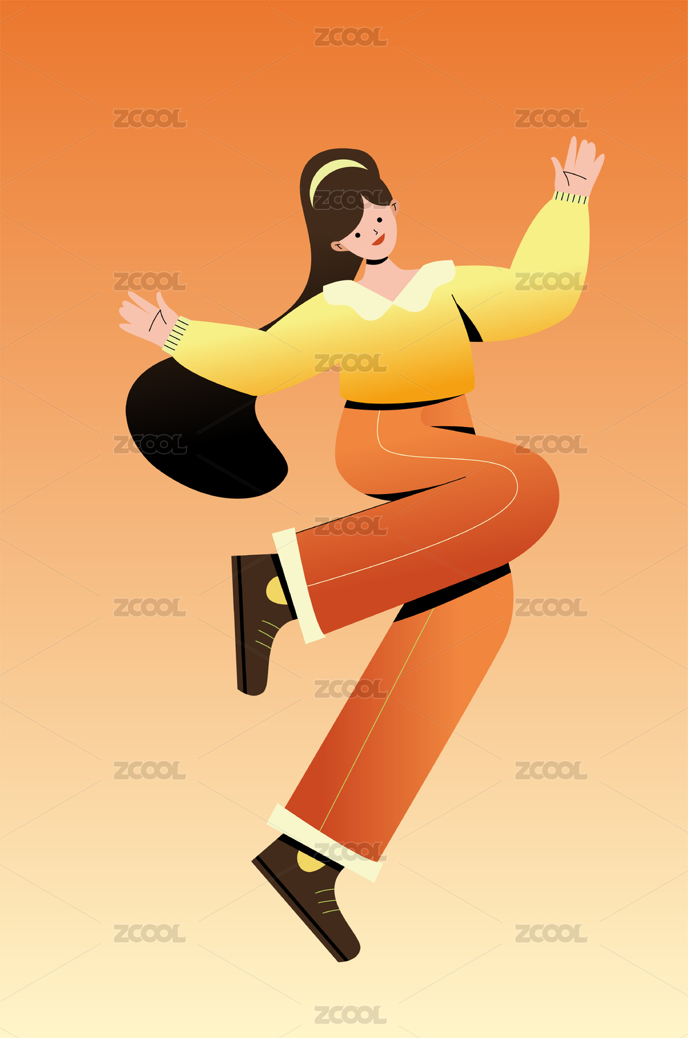 一个开心跳跃的女孩子