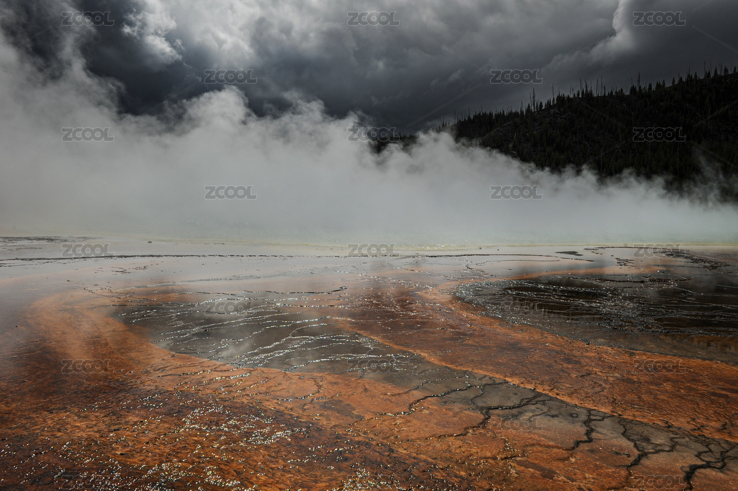 美国大棱镜温泉的蒸汽