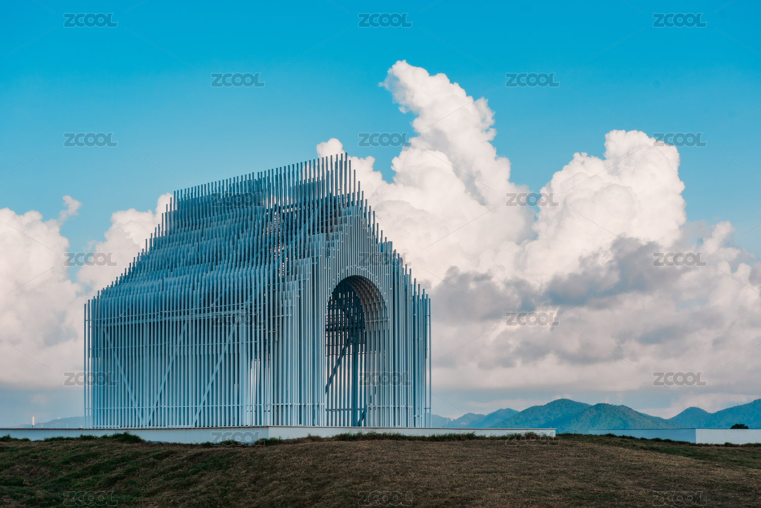 希腊圣托里尼岛伊亚镇的典型的蓝白房子与悬崖风景