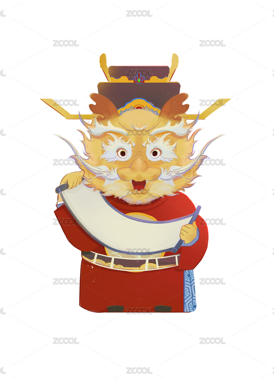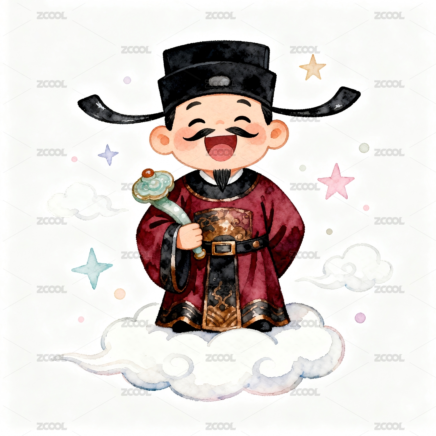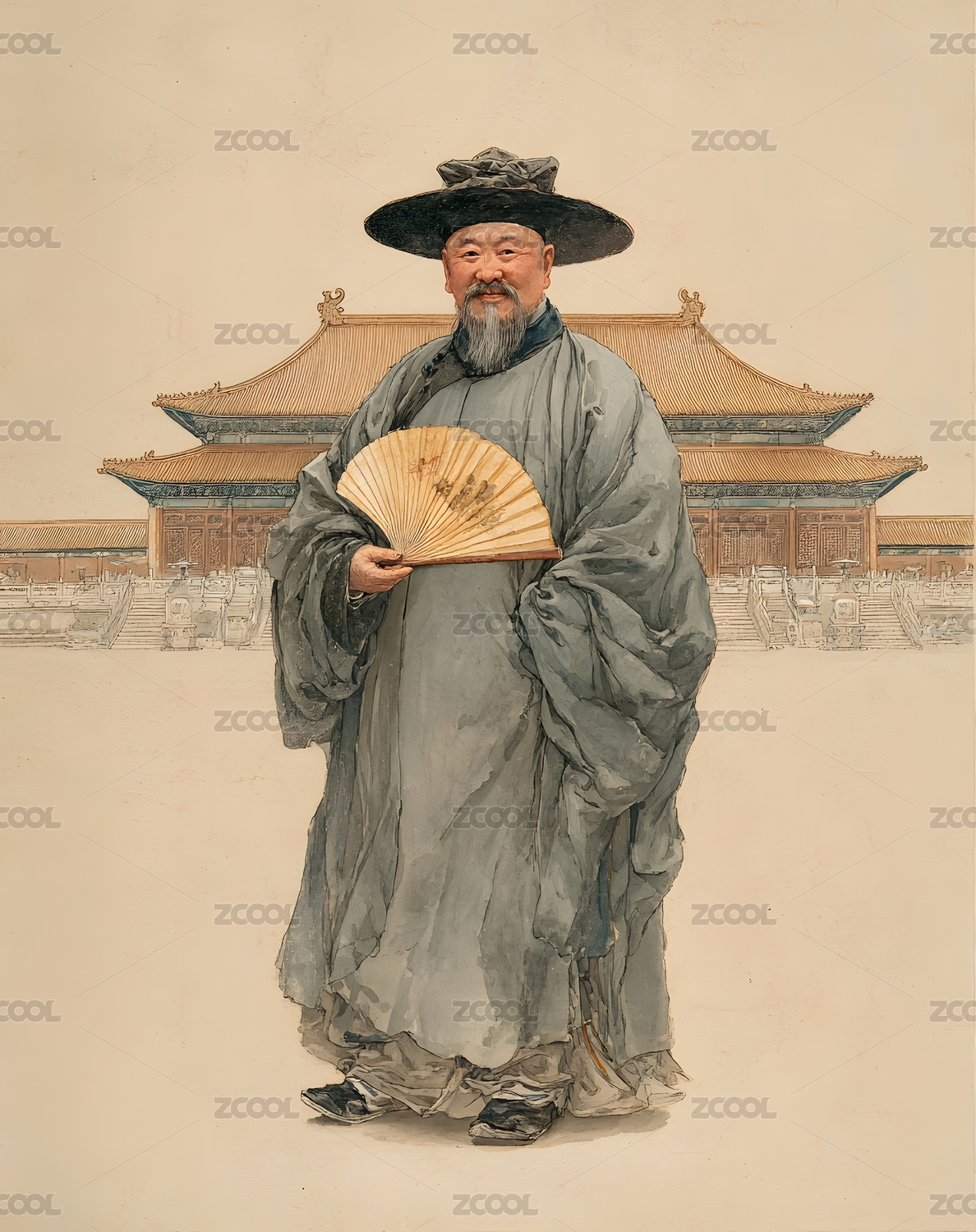 卡通古代人物牛运震顶戴花翎,手绘插画